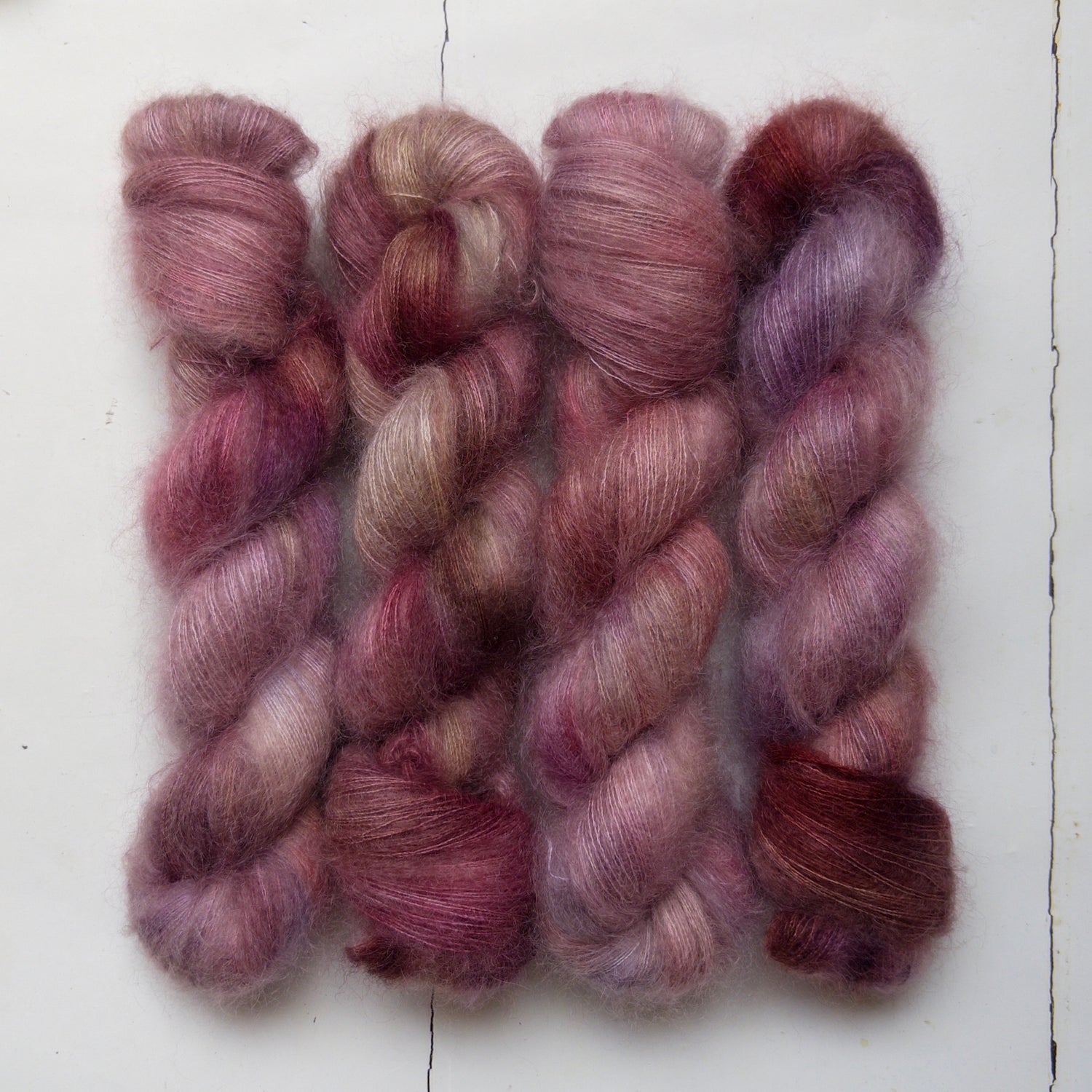 bees had gathered is dyed on furze | singles, our soft, smooth merino/mohair blend with its amazing sheen and very faint halo and it combines honey gold with flashes of lavender, coral and warm terracotta.