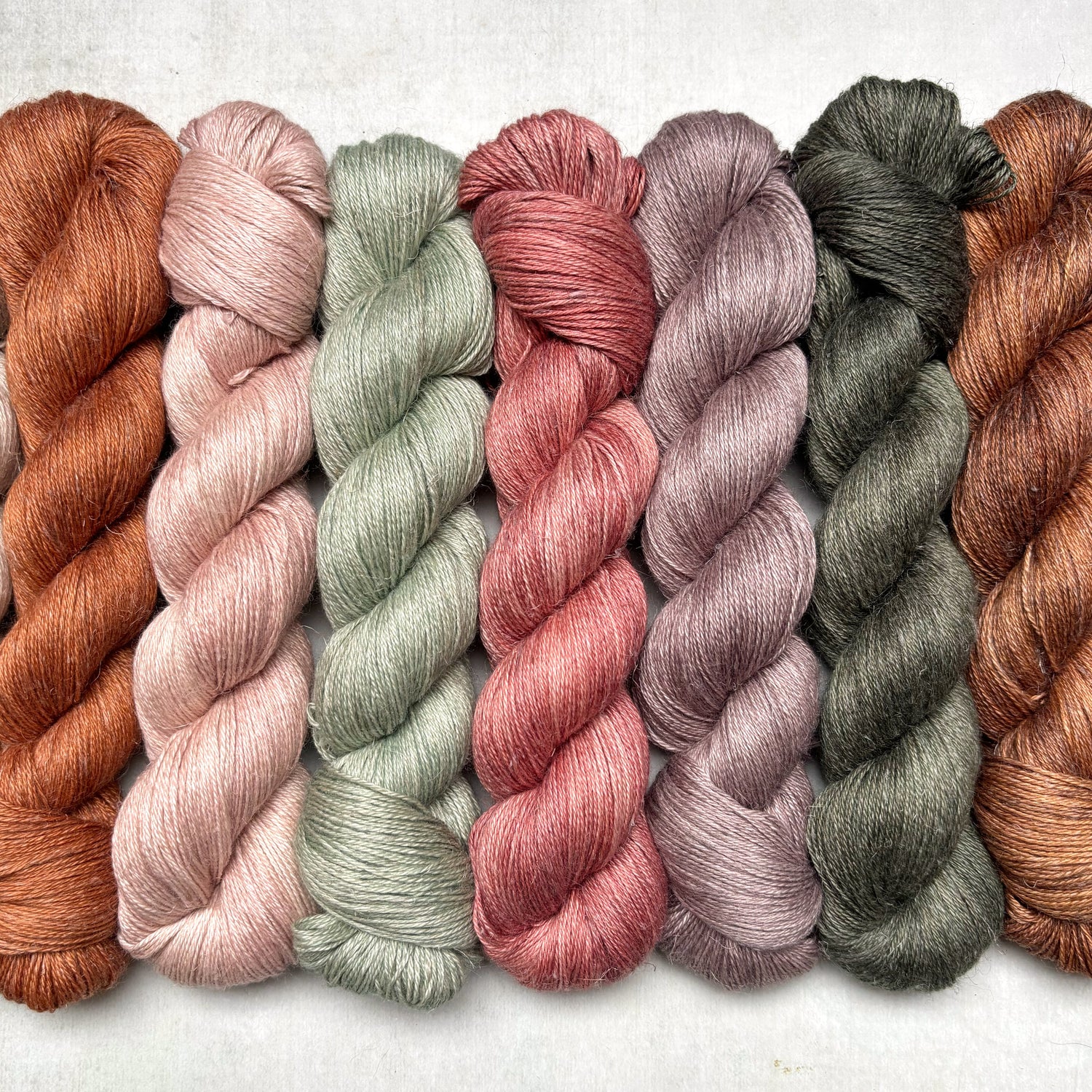 Our core spring shade collection comprises nine semi-solid shades inspired by a rustic bohemian palette of warm pink, terracotta, rusty orange, and mellow green. Complimentary variegated shades and limited-run options will be 'popping up' through the season too!