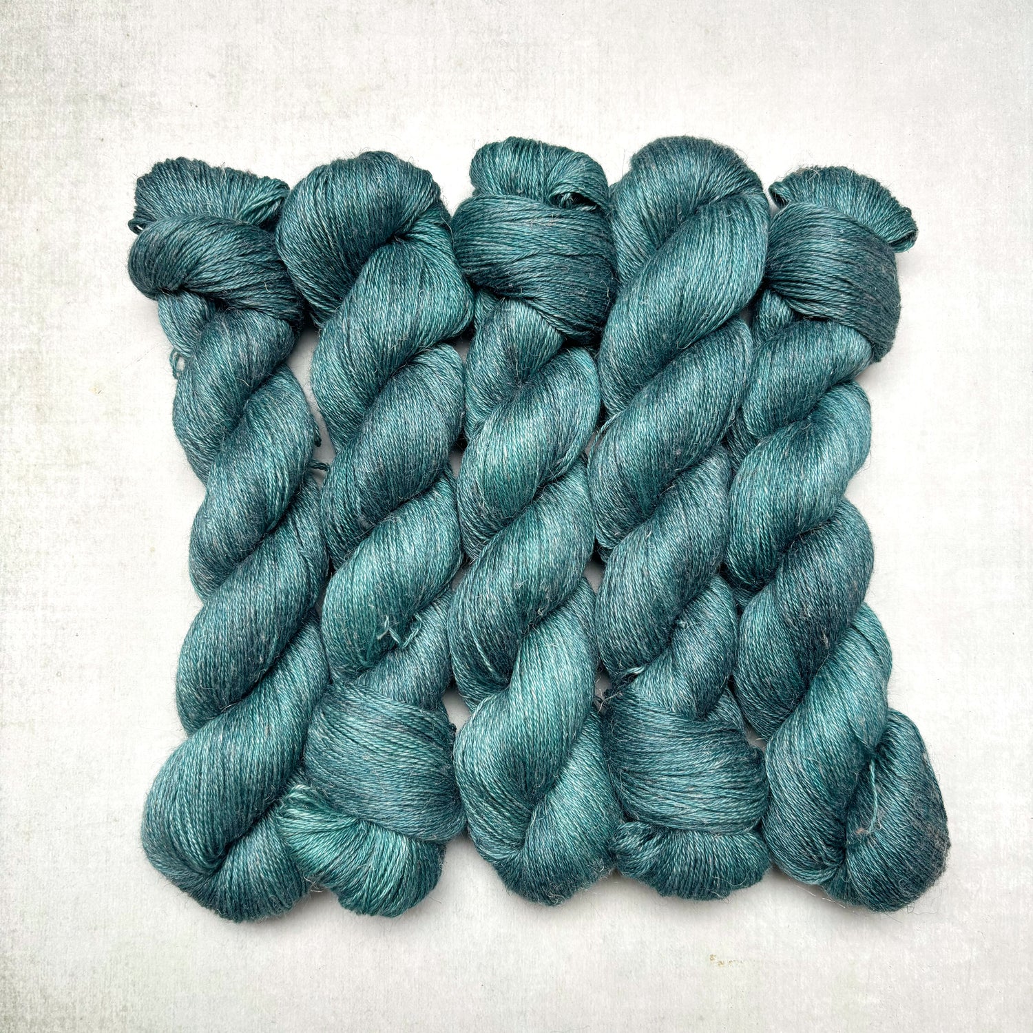loke | fingering is a blend of 50% baby alpaca, 25% silk, and 25% linen – fibres that give it a soft halo, glorious sheen, and a slightly slubby, rustic appearance.