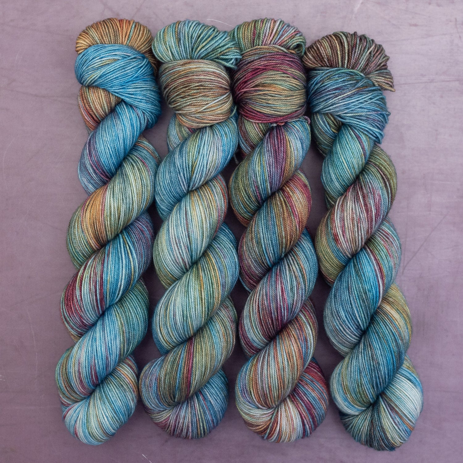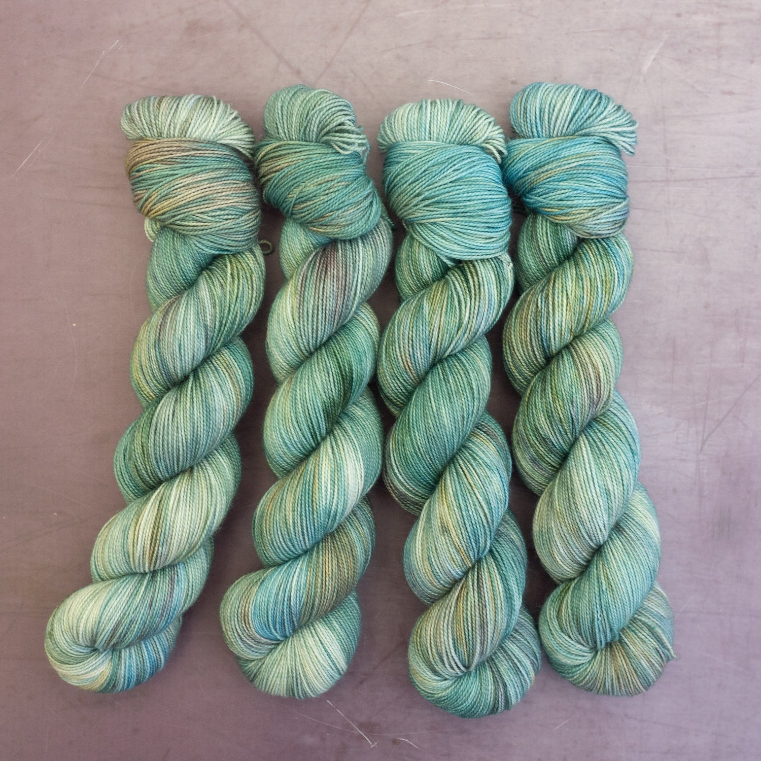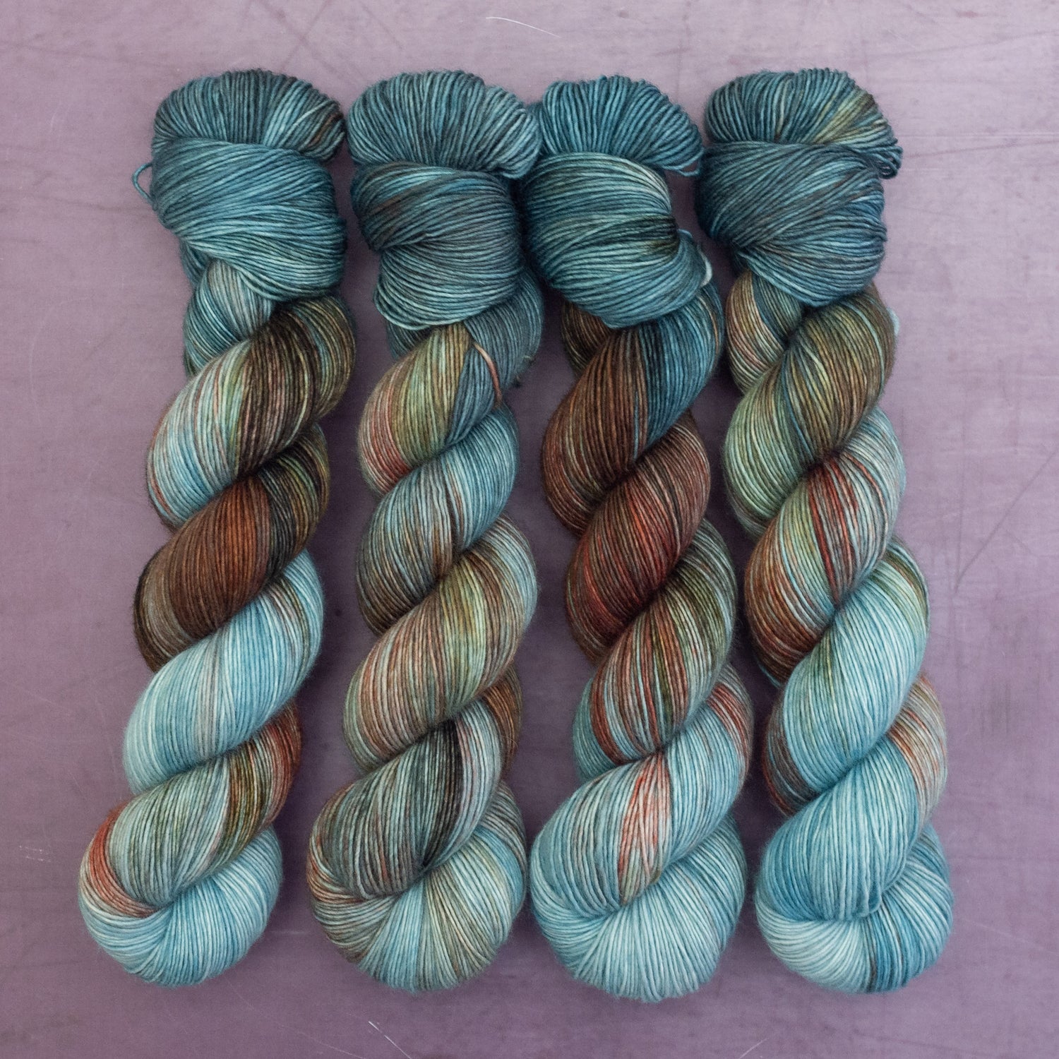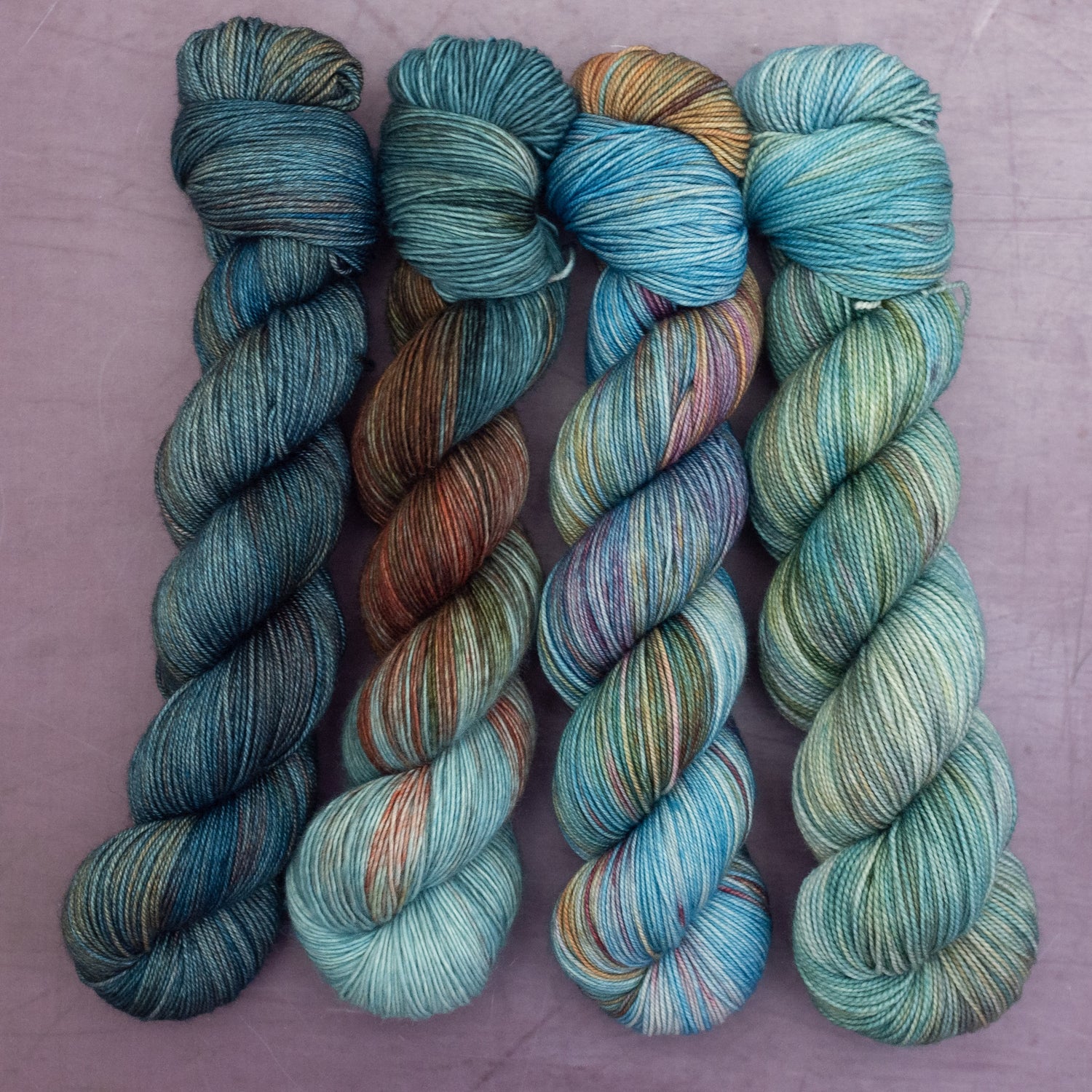 It inspired this handful of shades in the dye pots - embracing aqua, sage, turquoise, and teal, with bronze, amber, ochre, cherry, and rust accents. All the colours of the sea, sky, marshes, and meadows...