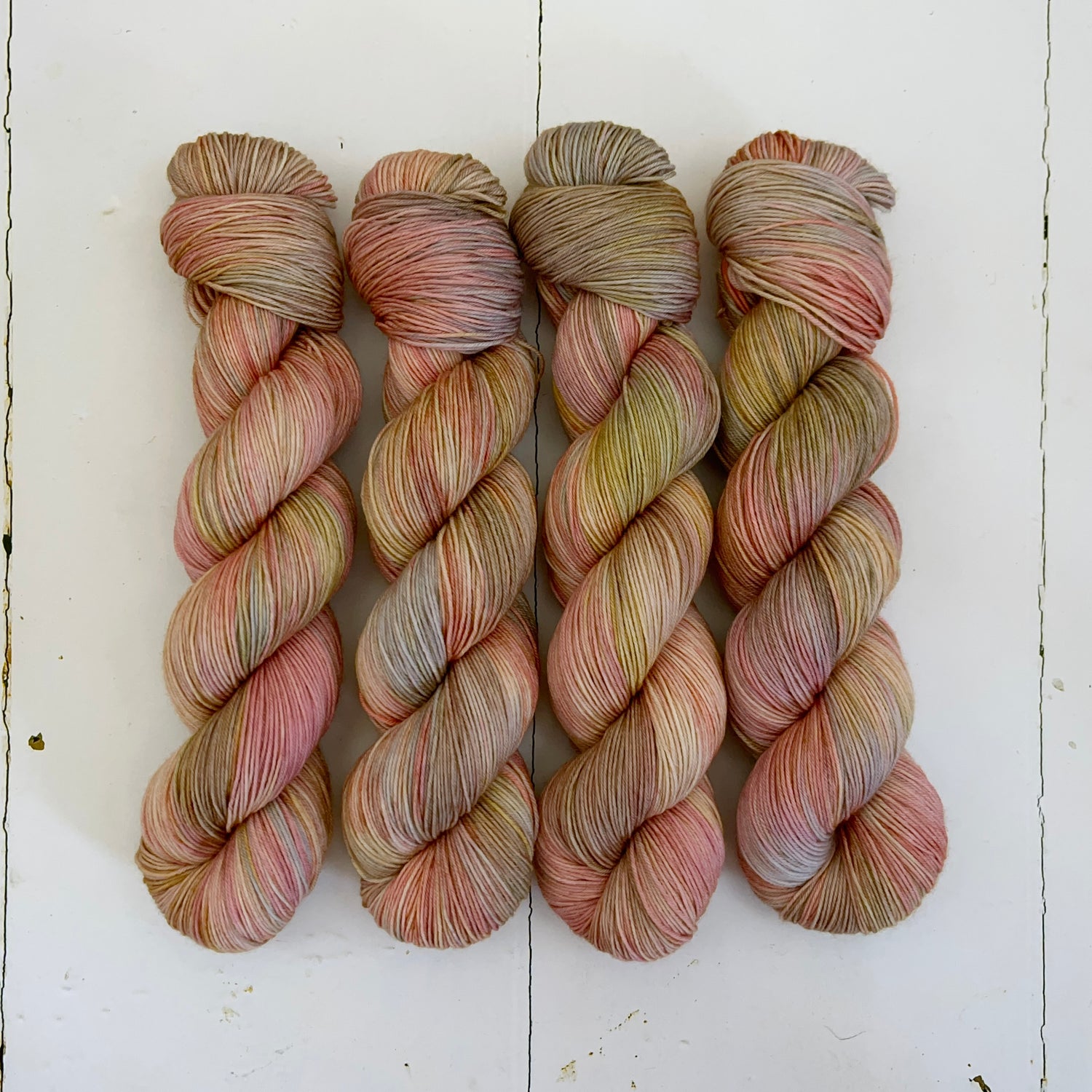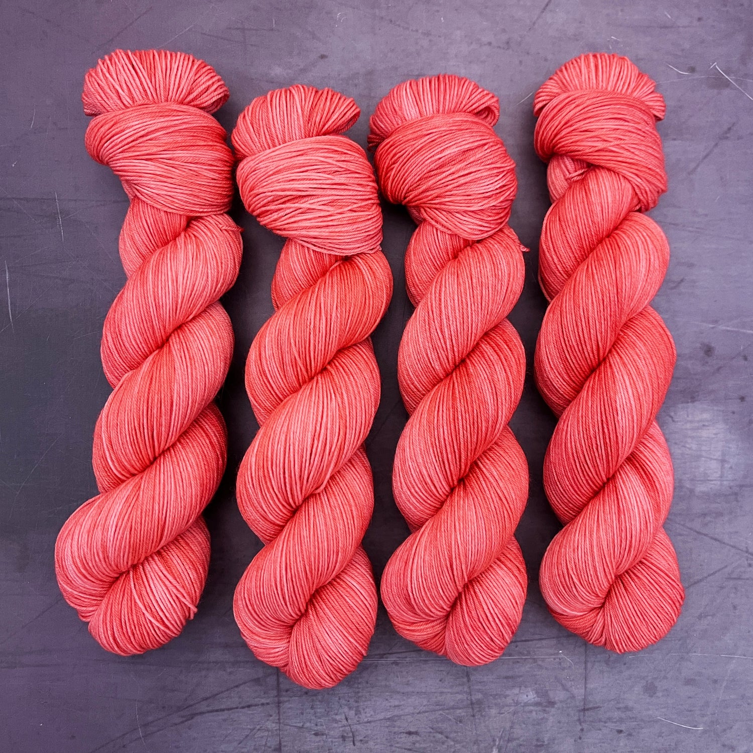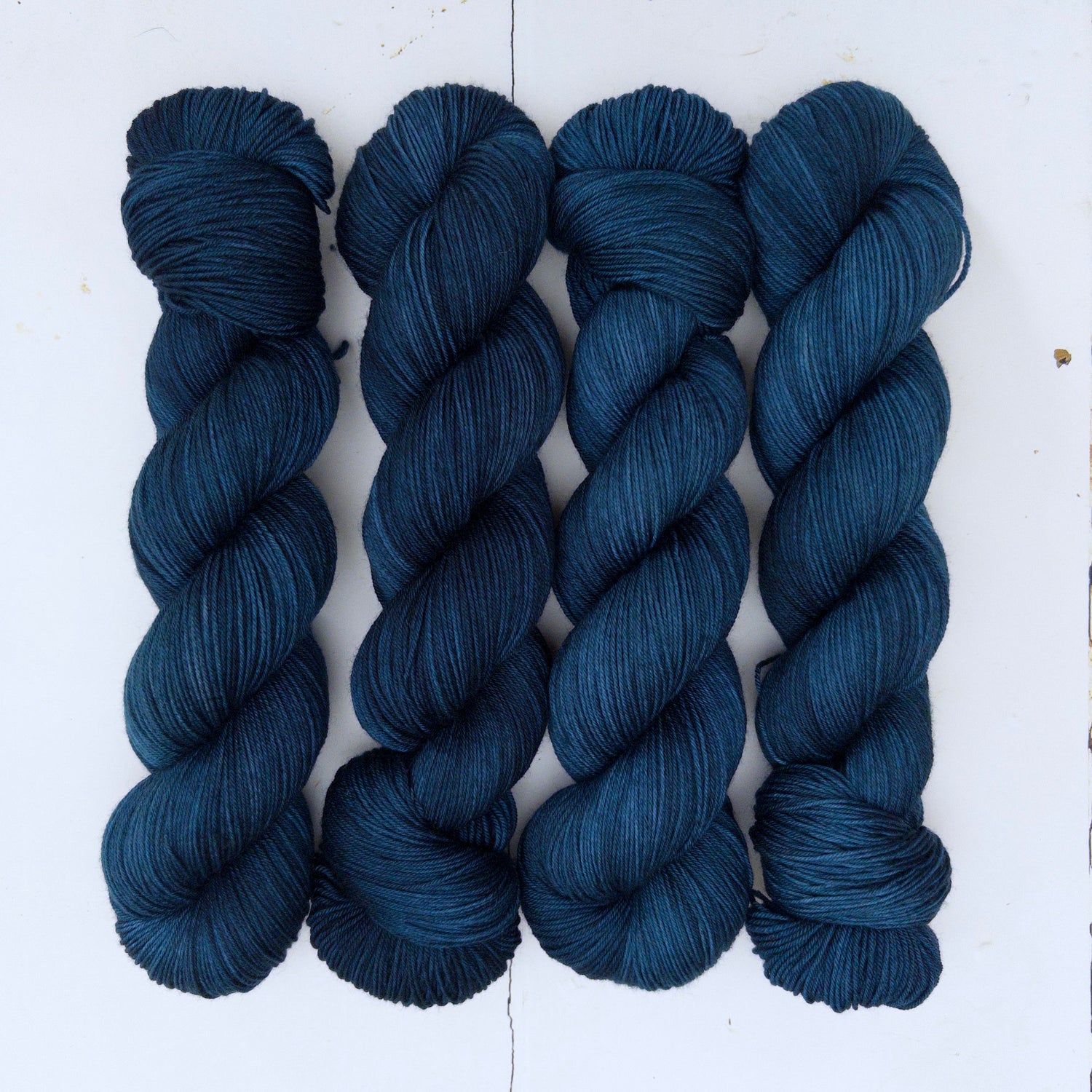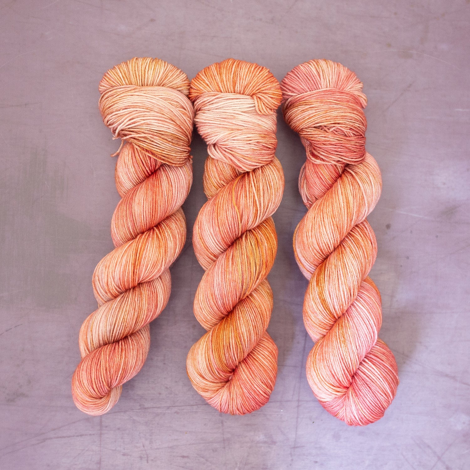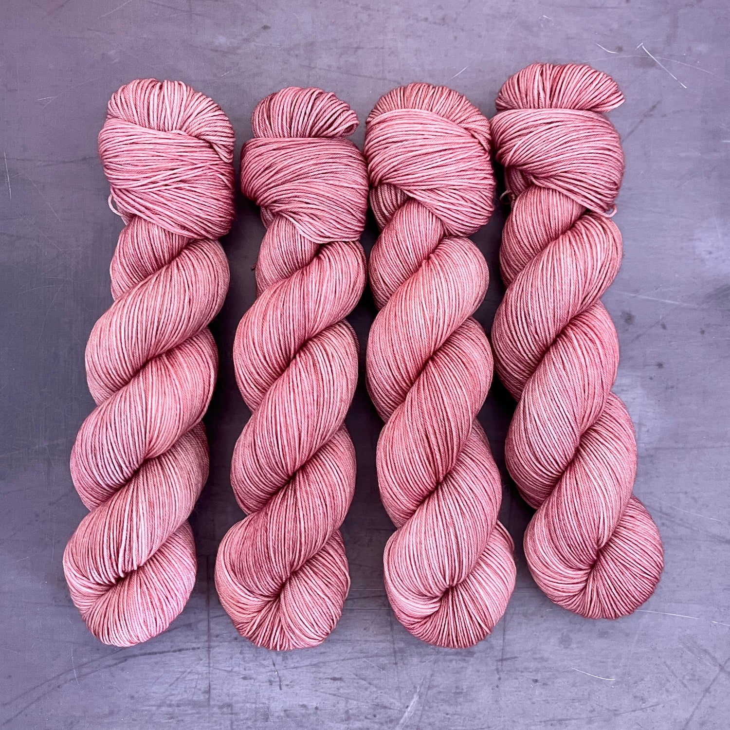 Skeins purchased here are DYED TO ORDER and have a lead time to dispatch of approx. 7 days. Please note, photos show a recently dyed batch but some colour variation is possible. For more insight into our dye techniques and approach to repeatable shades see currently in the dye pots.