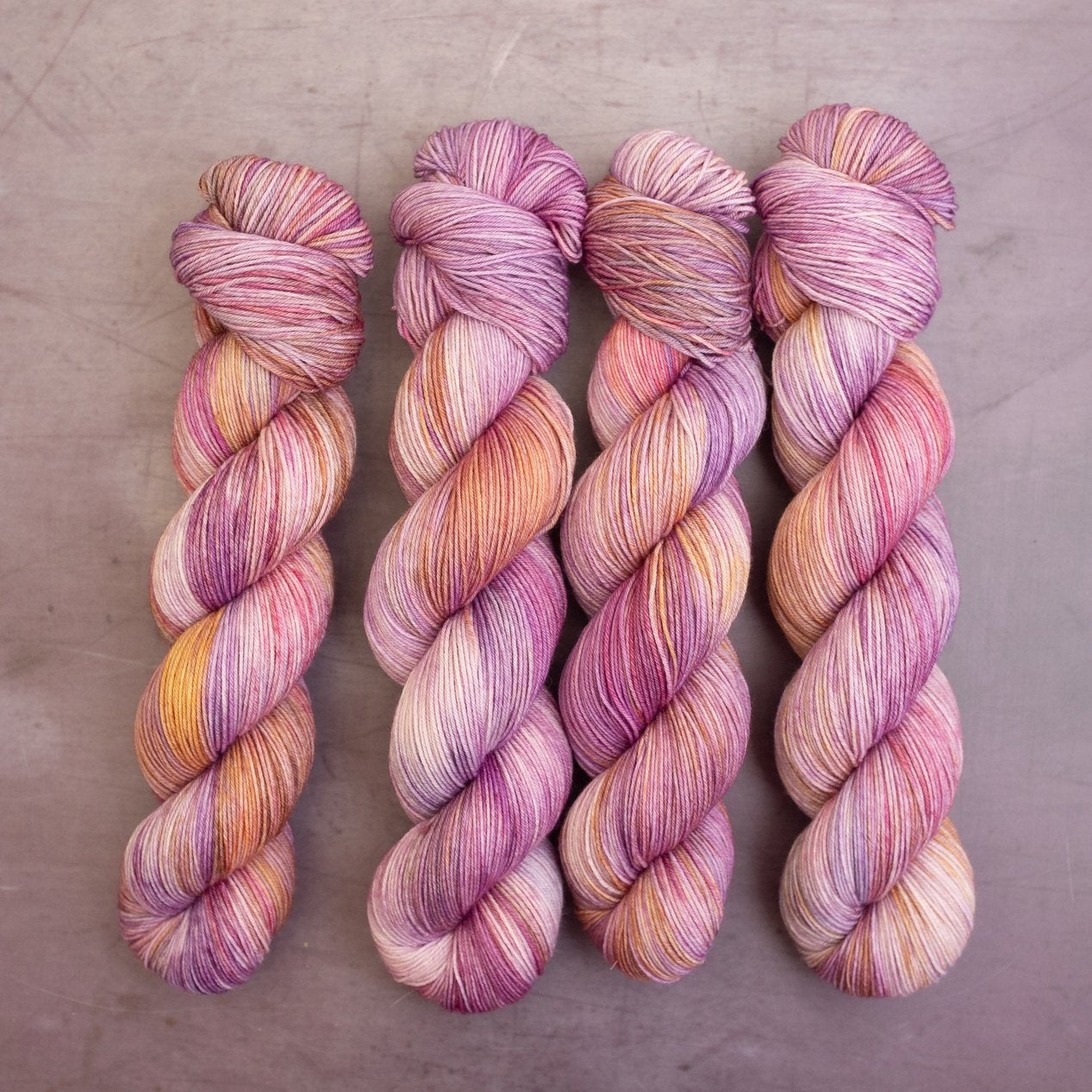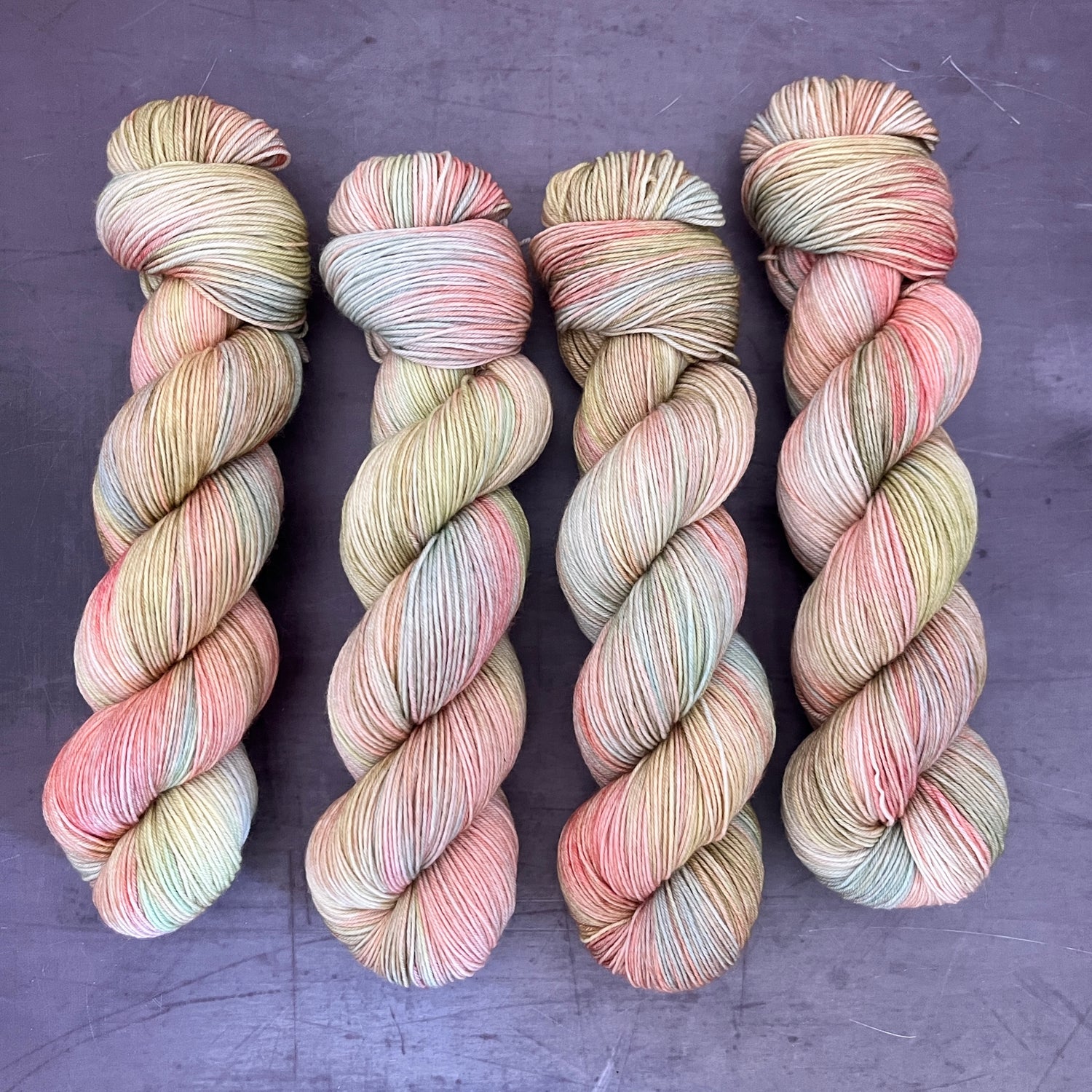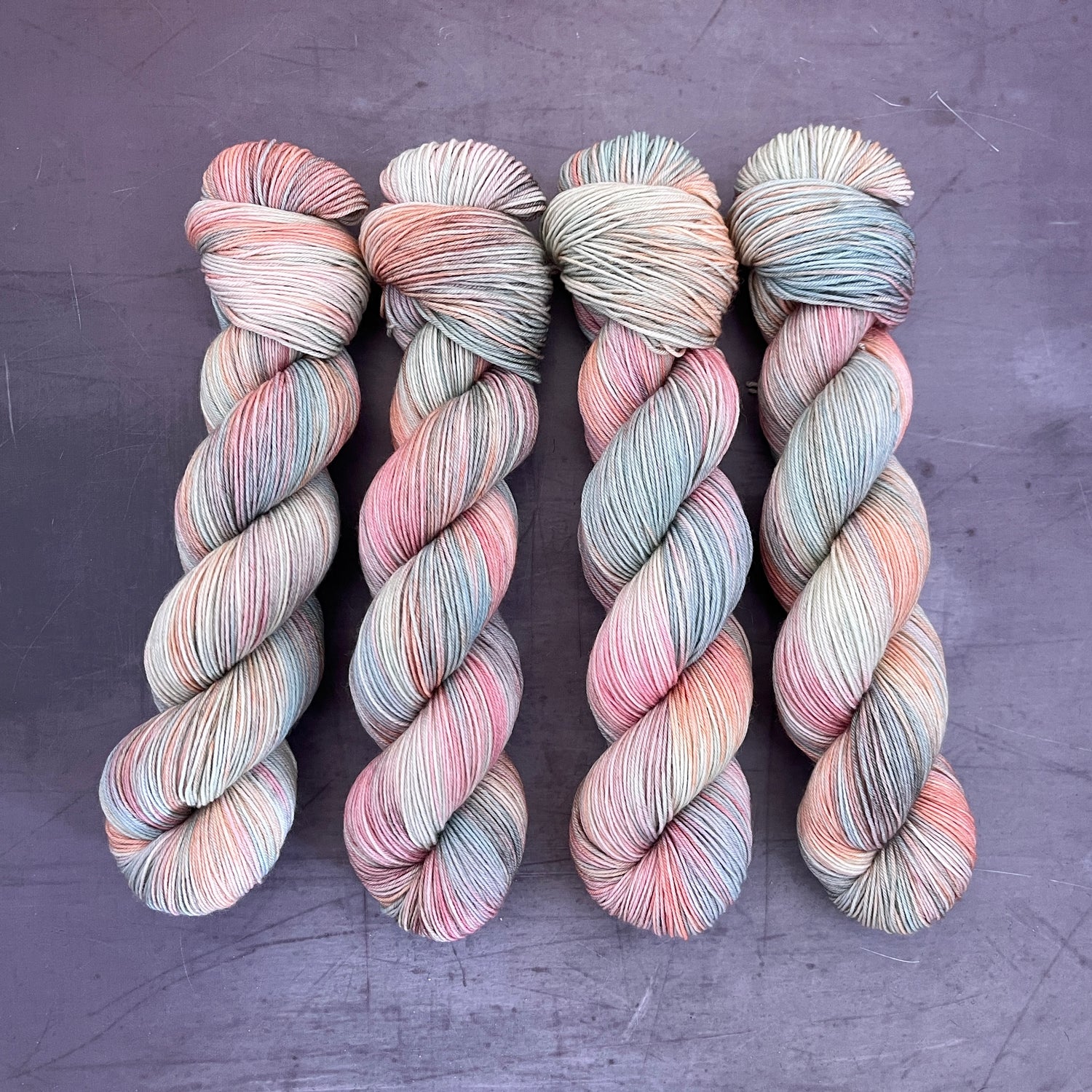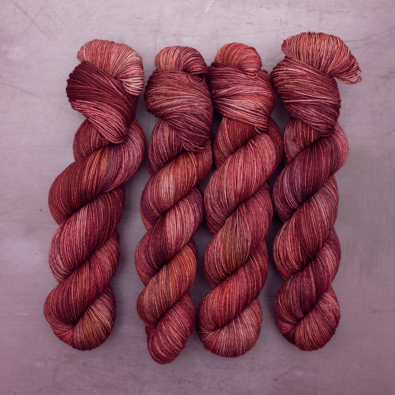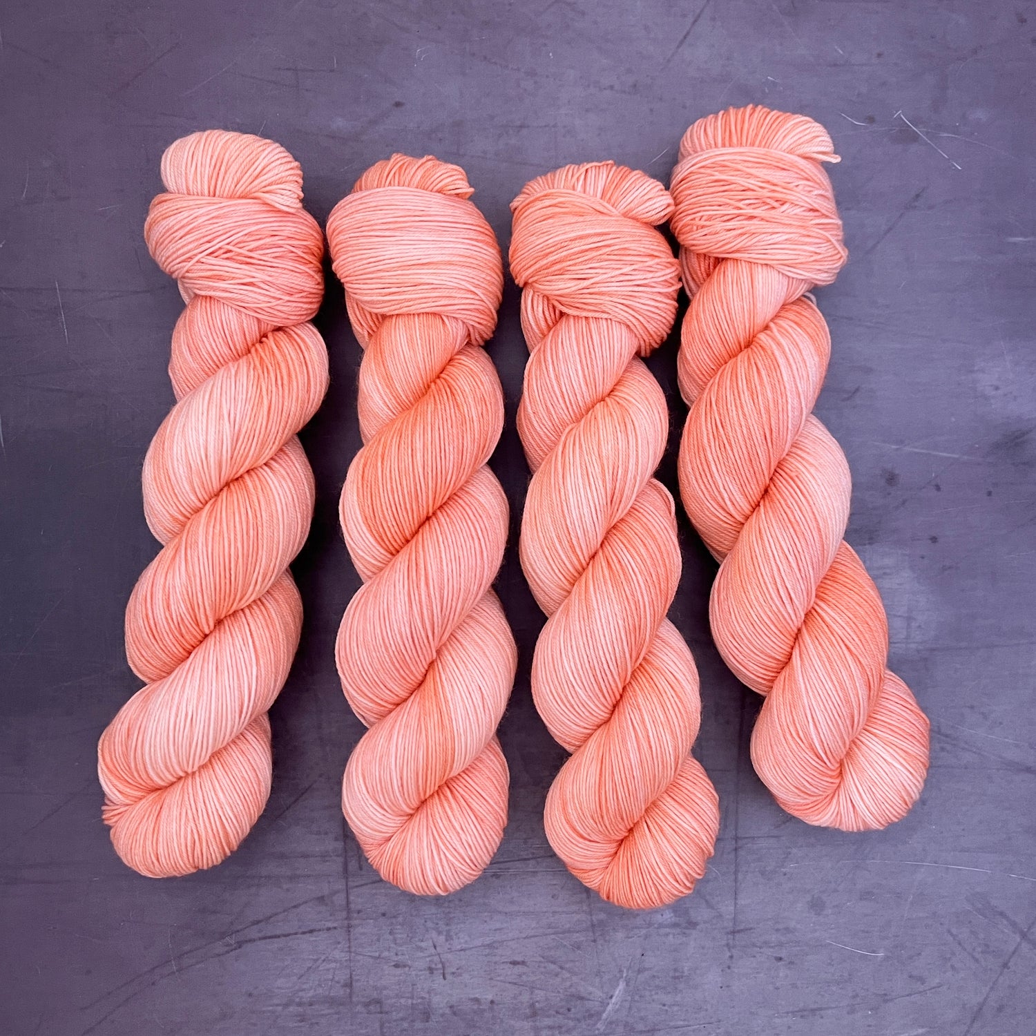 Skeins purchased here are DYED TO ORDER and have a lead time to dispatch of approx. 7 days. Please note, photos show a recently dyed batch but some colour variation is possible. For more insight into our dye techniques and approach to repeatable shades see currently in the dye pots.