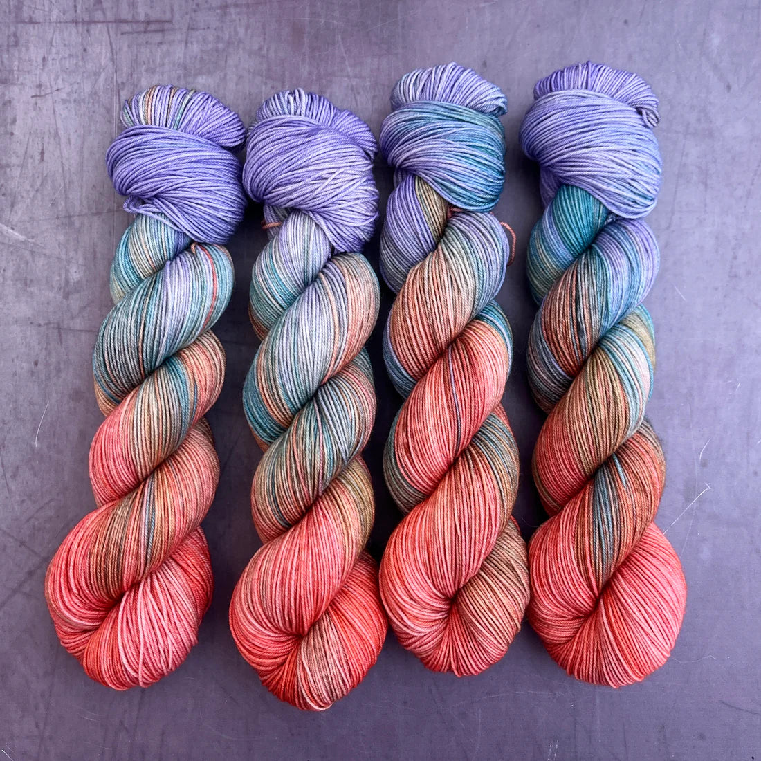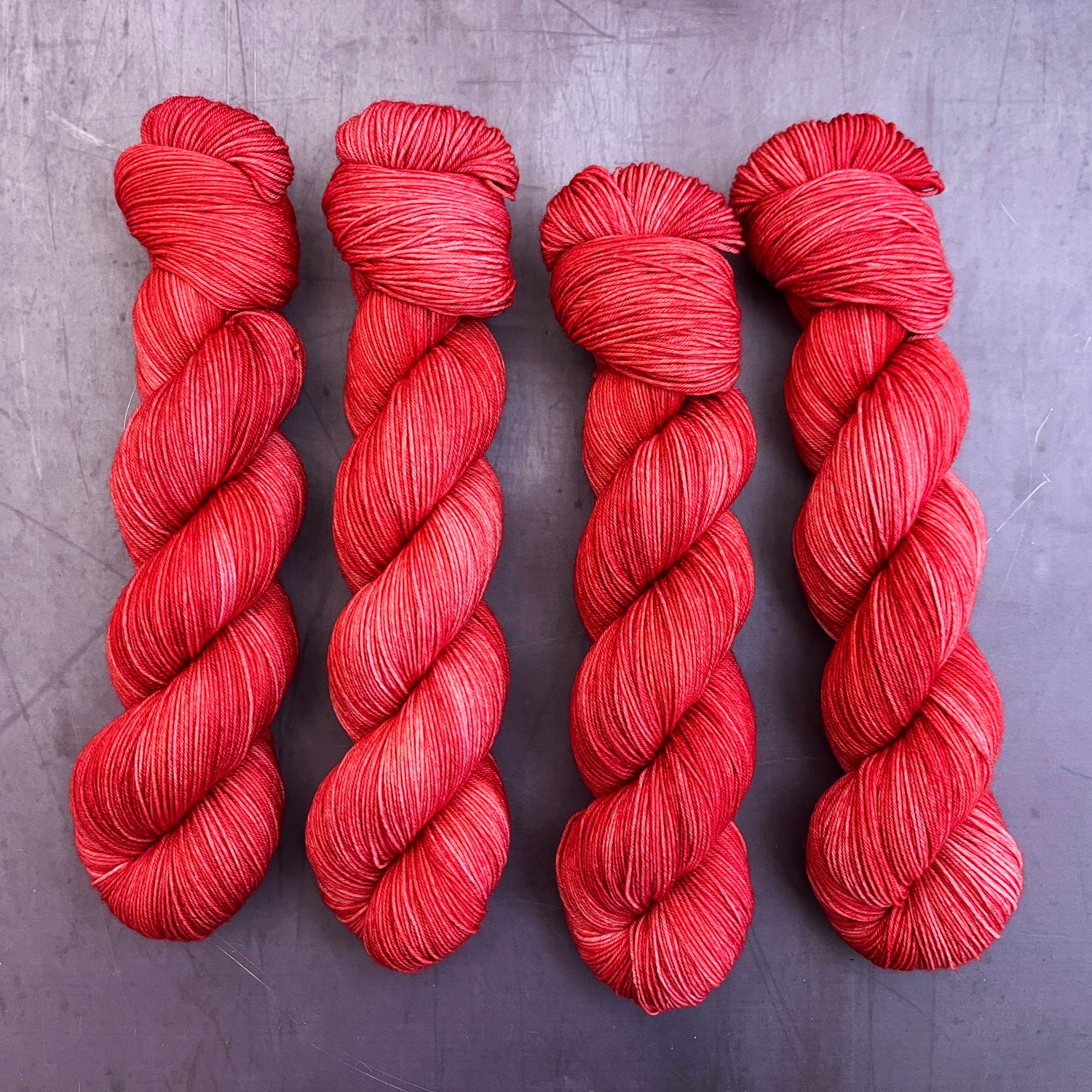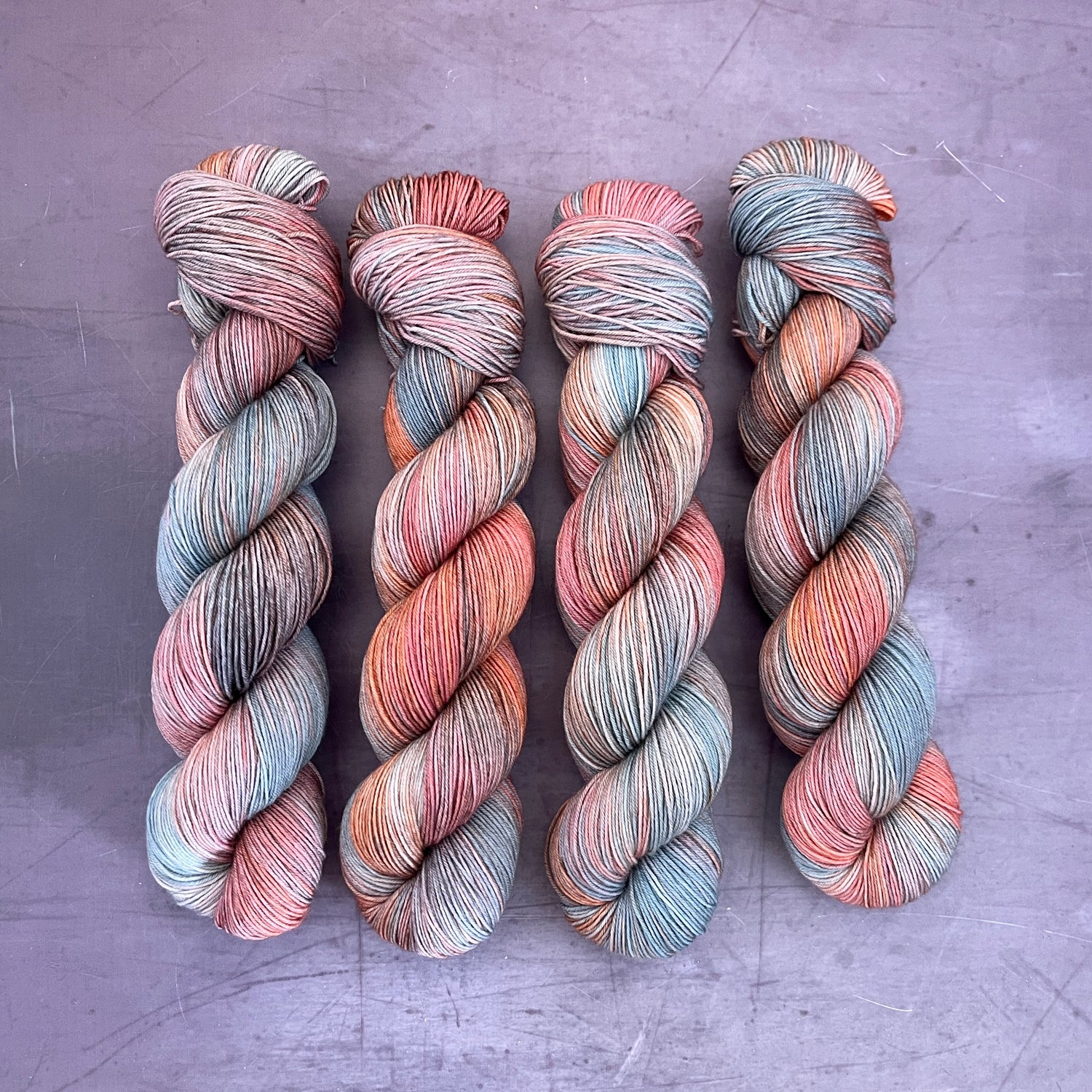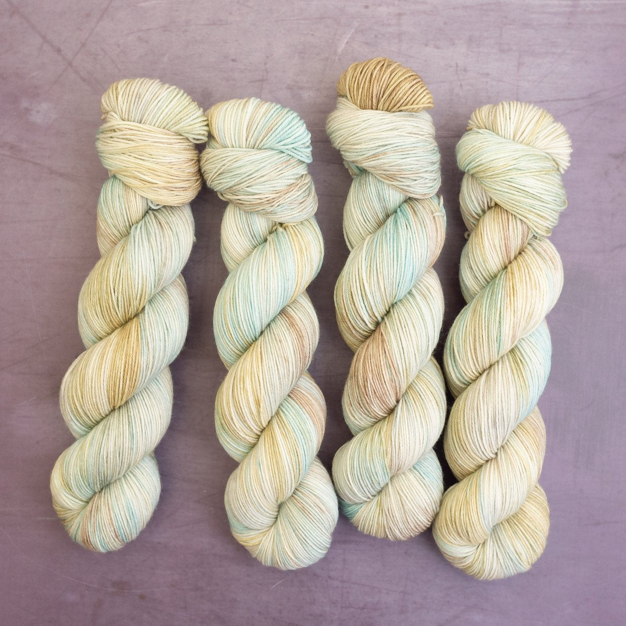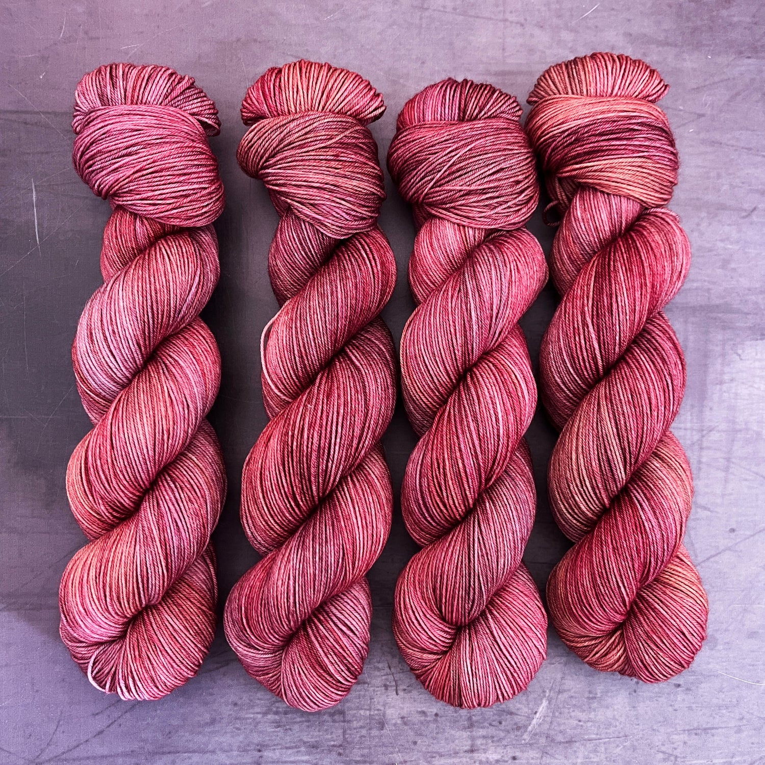 Skeins purchased here are DYED TO ORDER and have a lead time to dispatch of approx. 7 days. Please note, photos show a recently dyed batch but some colour variation is possible. For more insight into our dye techniques and approach to repeatable shades see currently in the dye pots.