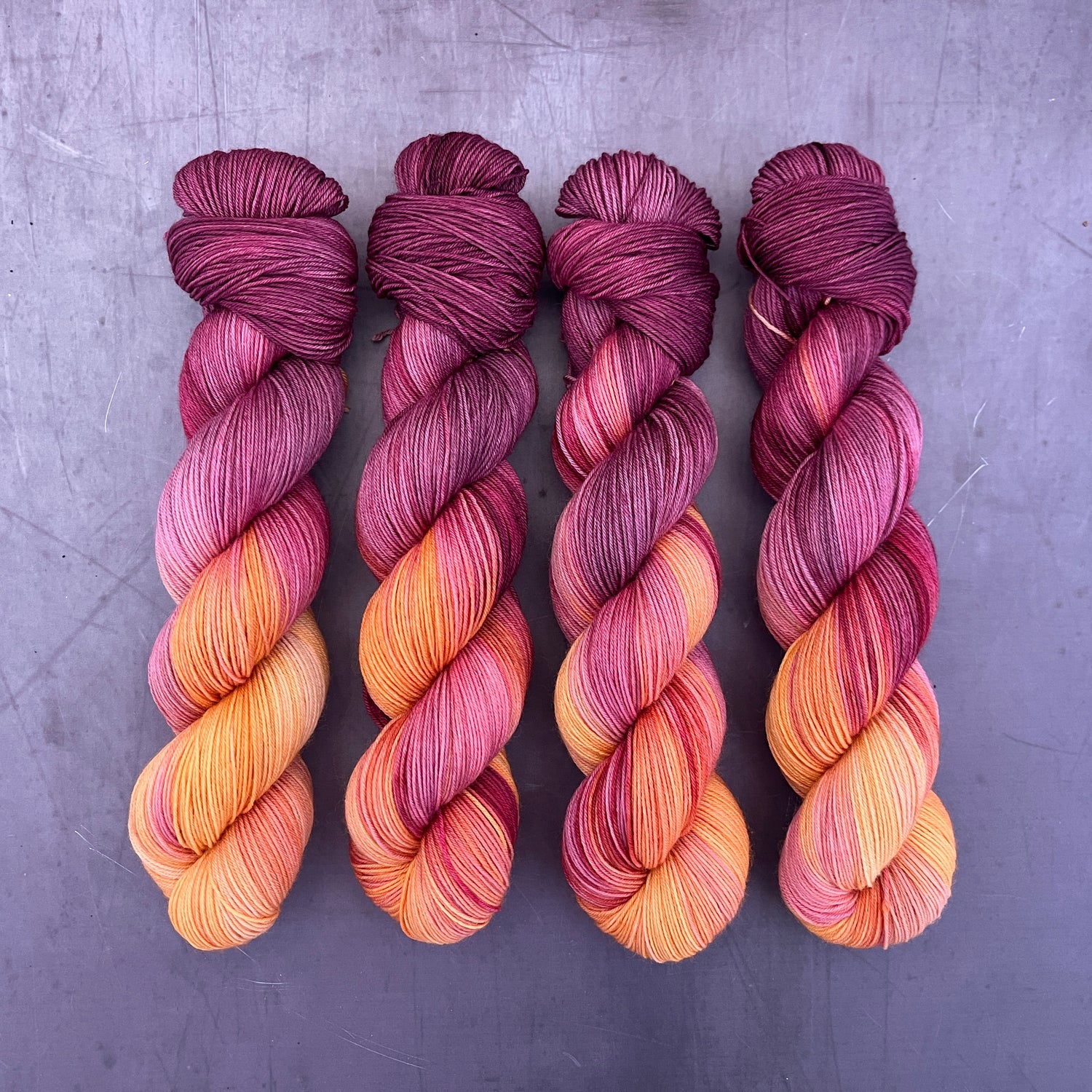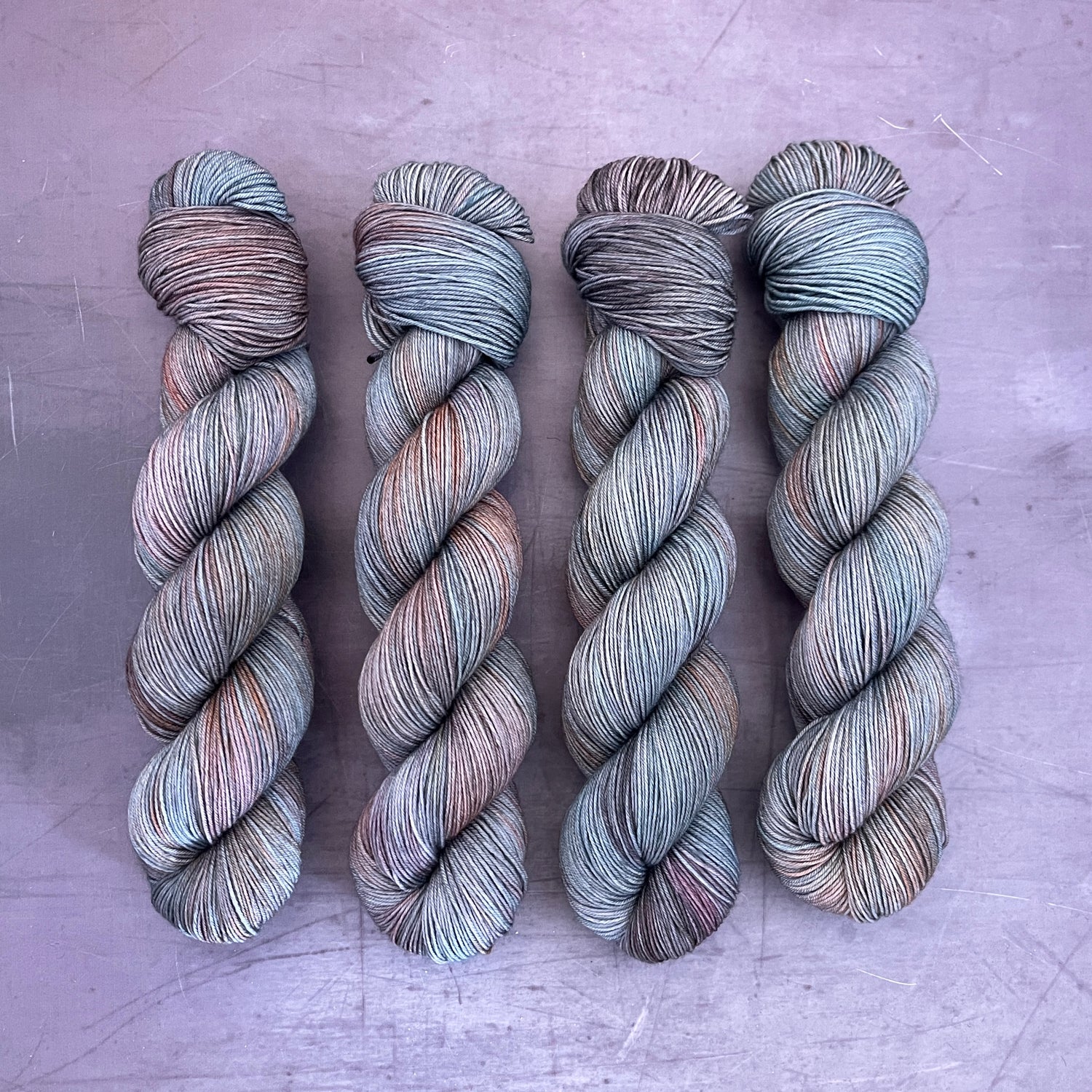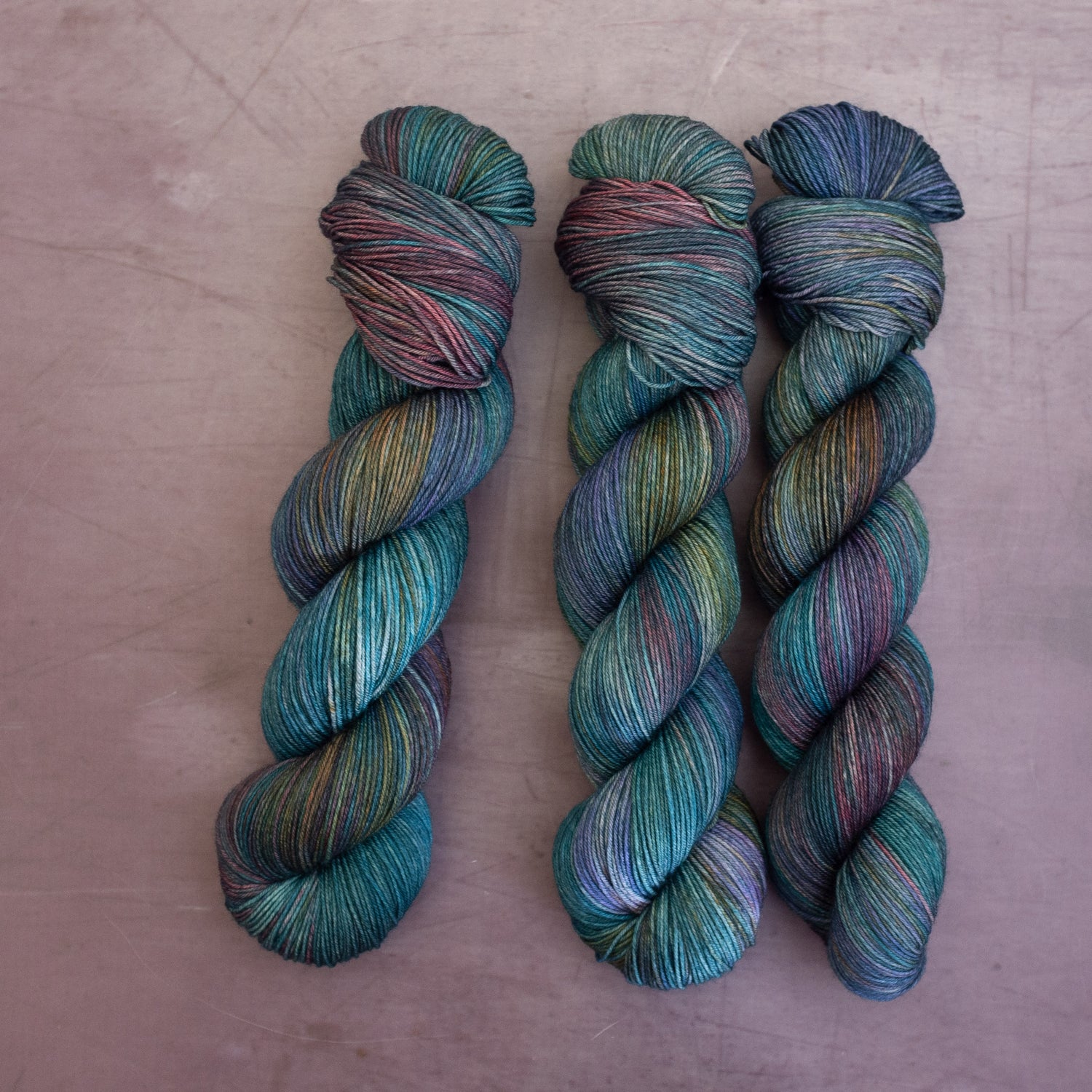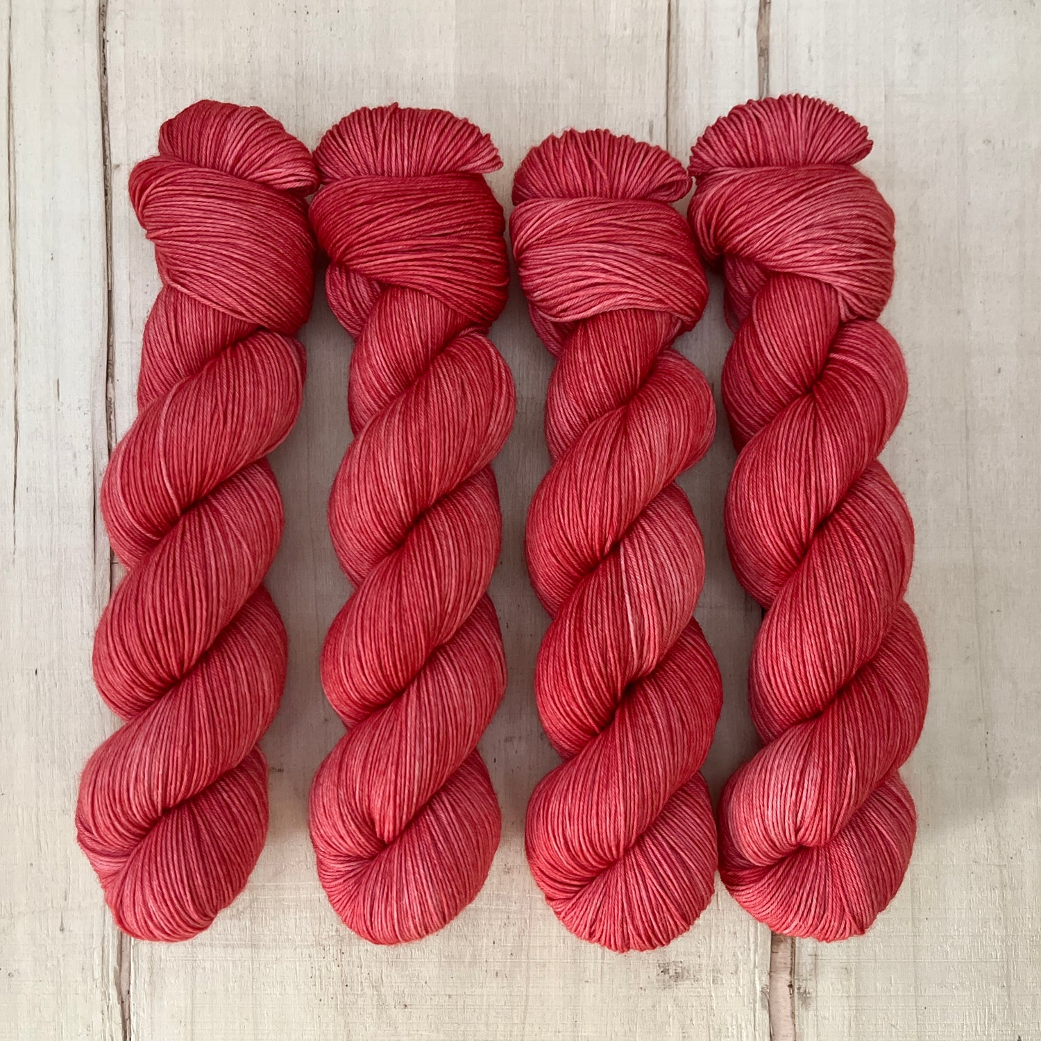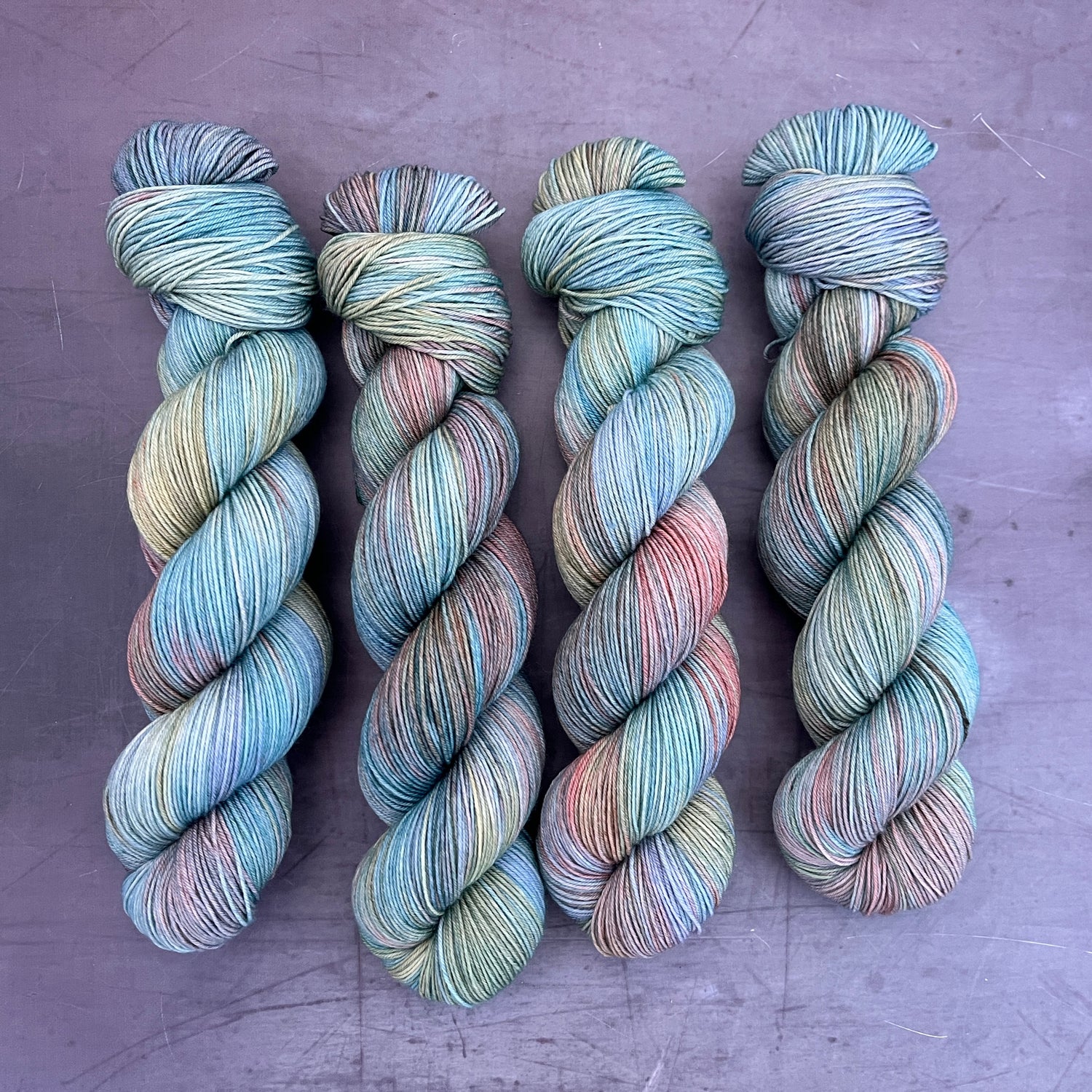 Skeins purchased here are DYED TO ORDER and have a lead time to dispatch of approx. 7 days. Please note, photos show a recently dyed batch but some colour variation is possible. For more insight into our dye techniques and approach to repeatable shades see currently in the dye pots.