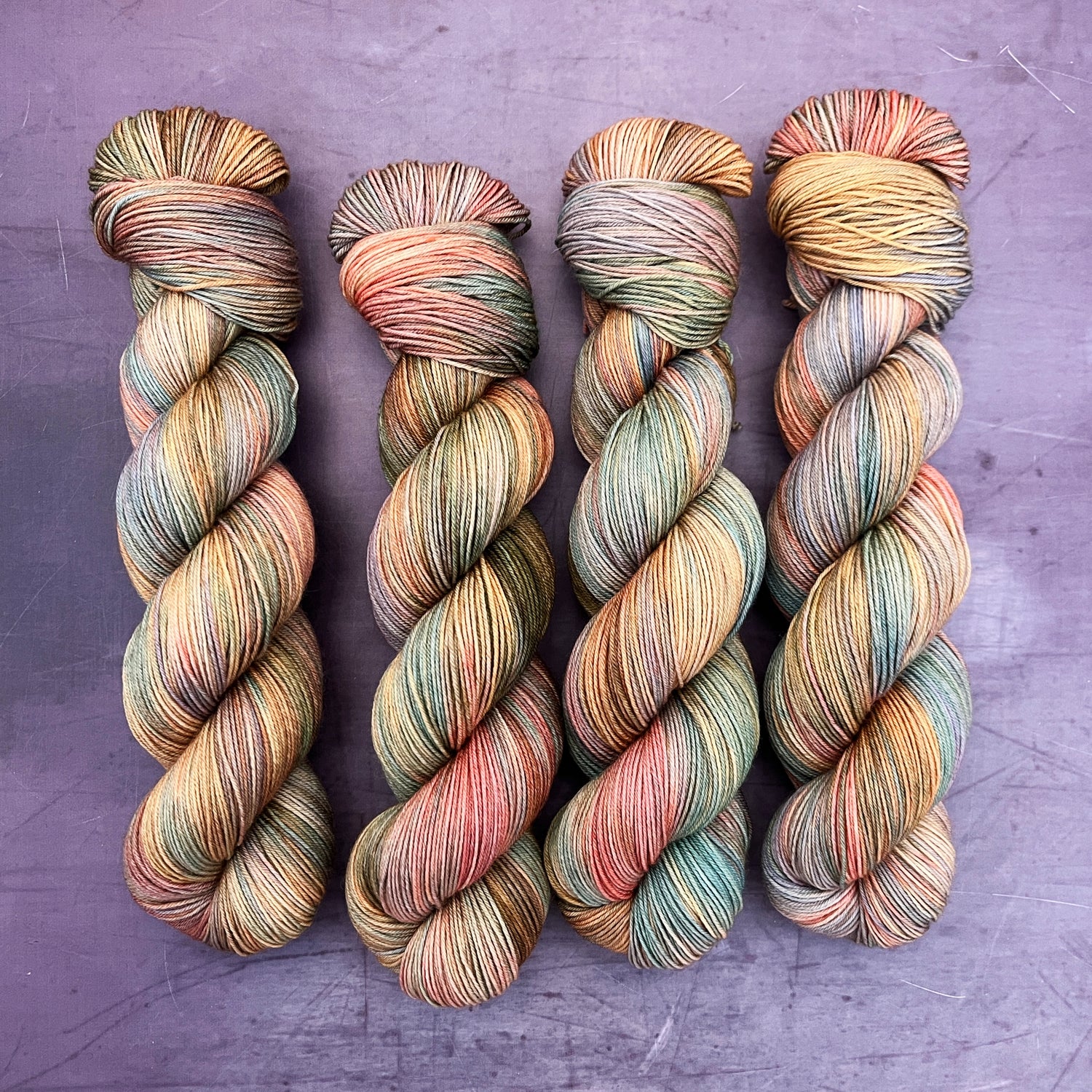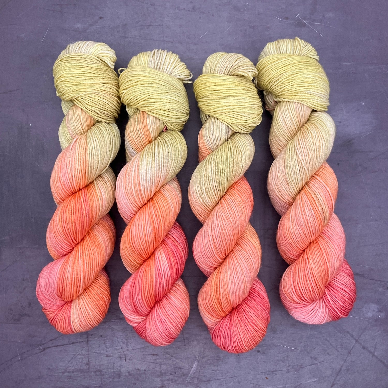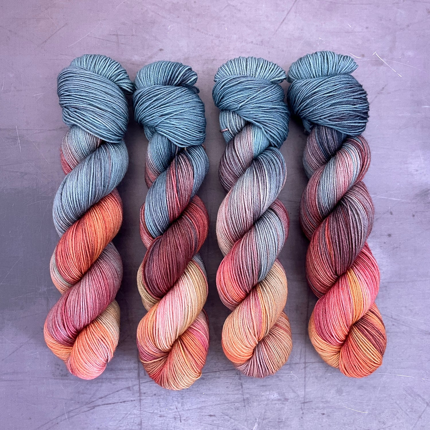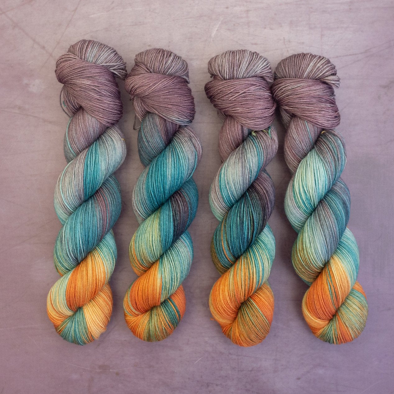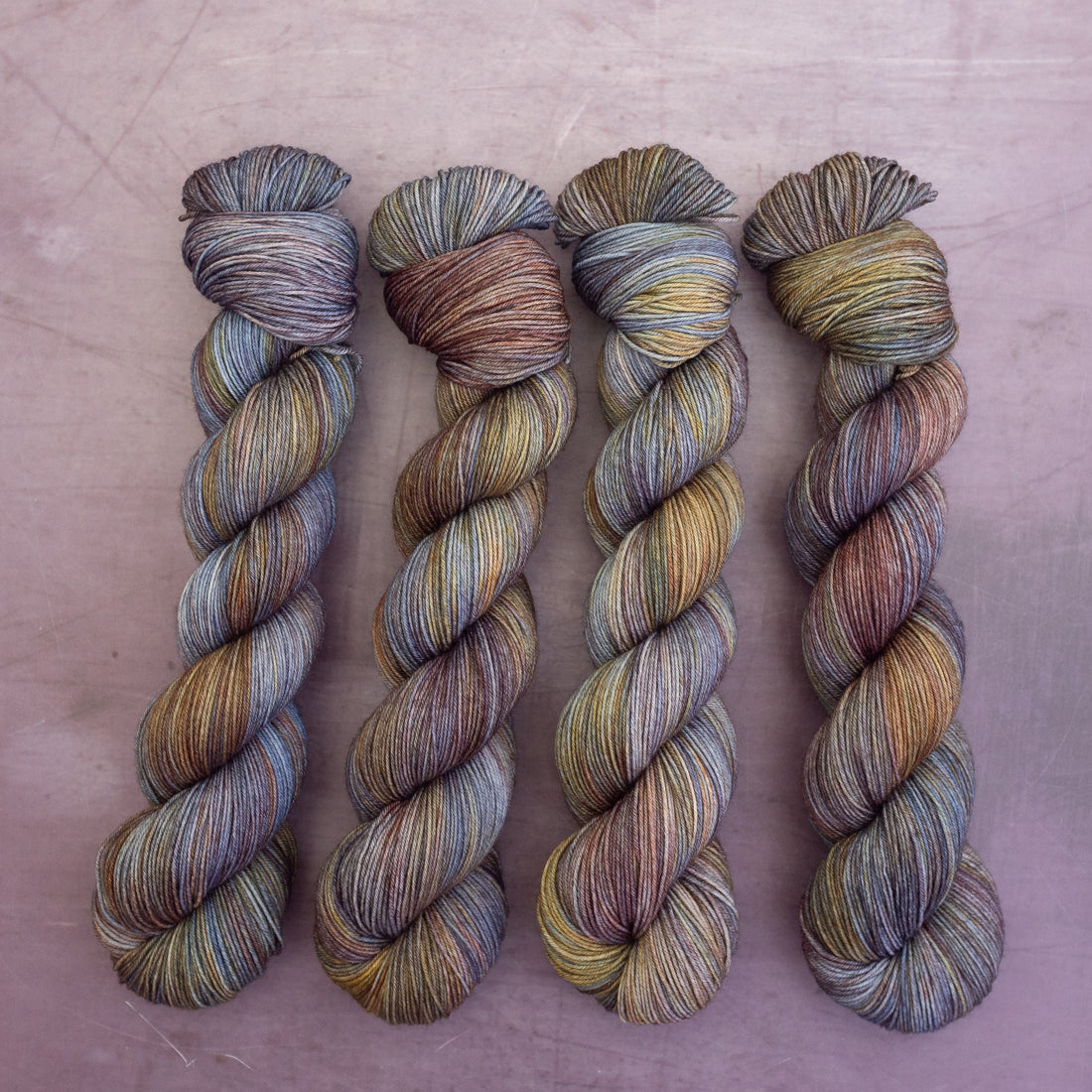 Skeins purchased here are DYED TO ORDER and have a lead time to dispatch of approx. 7 days. Please note, photos show a recently dyed batch but some colour variation is possible. For more insight into our dye techniques and approach to repeatable shades see currently in the dye pots.
