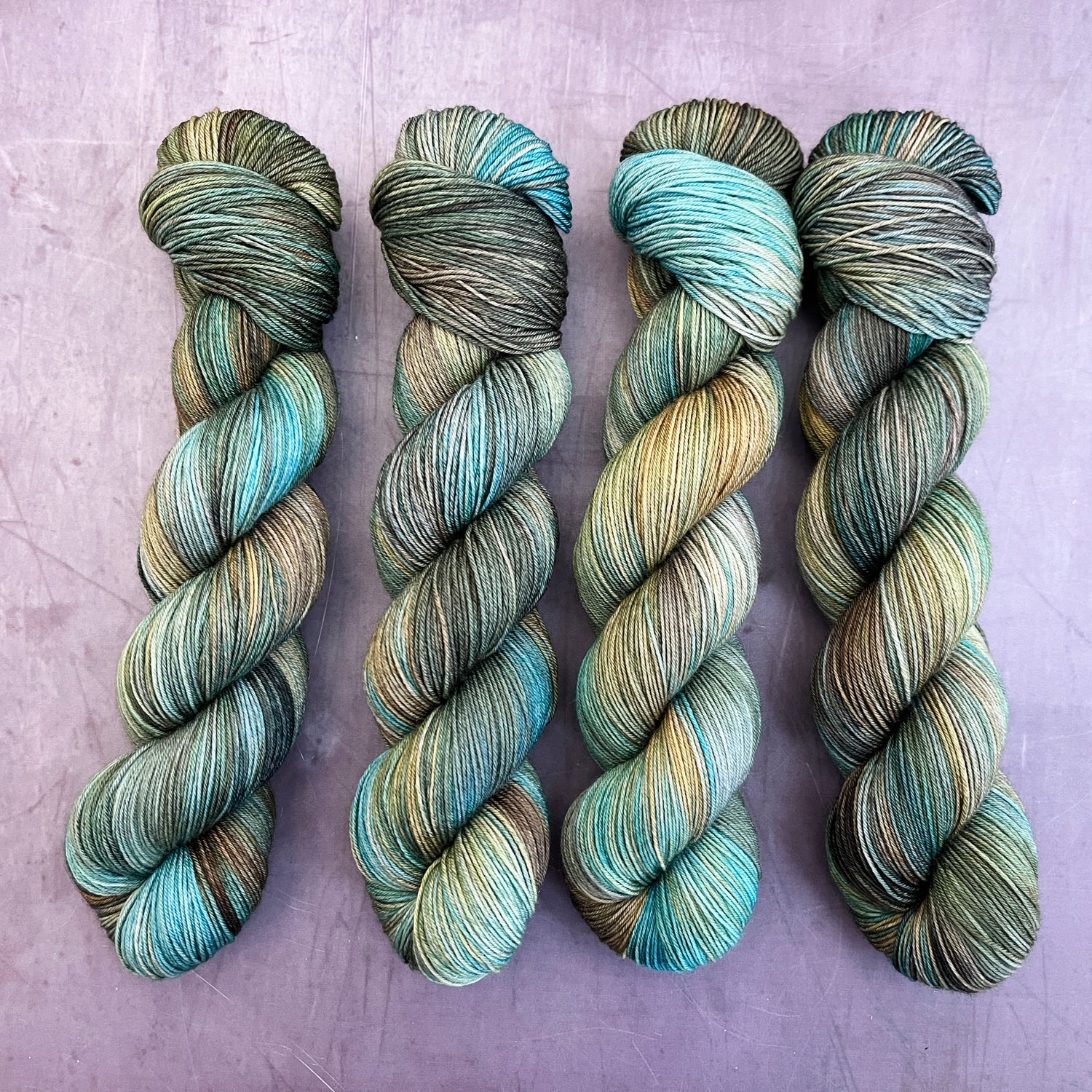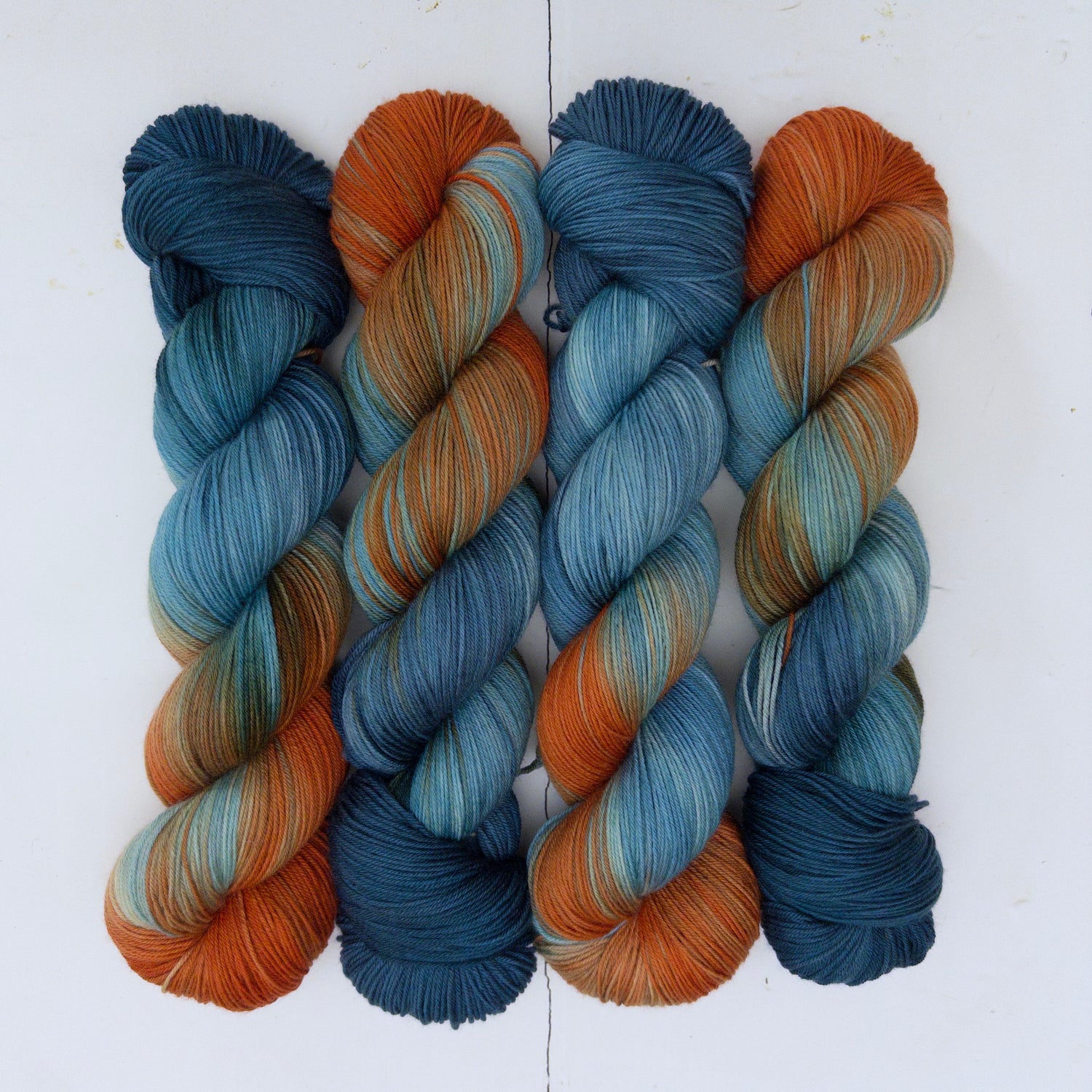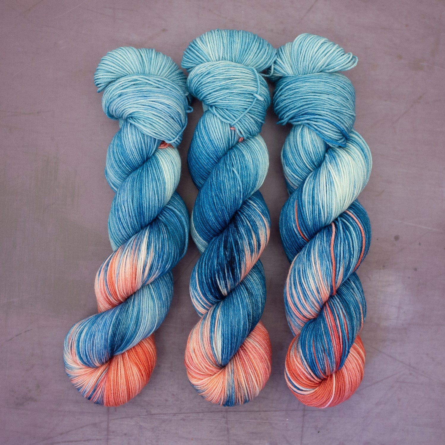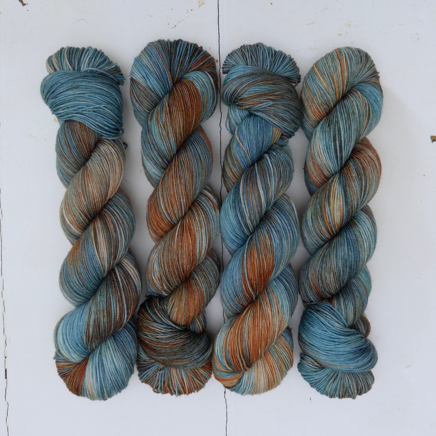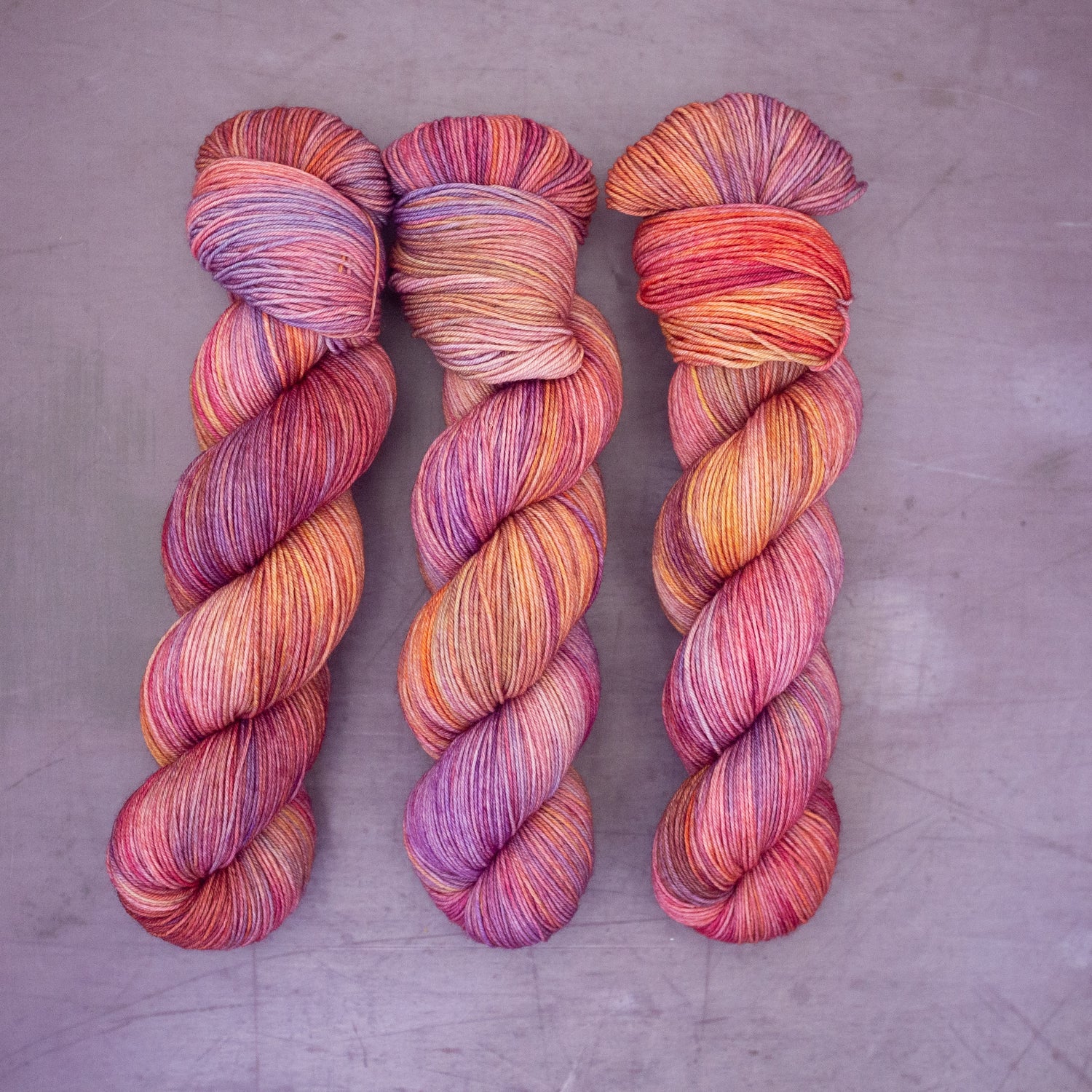 Skeins purchased here are DYED TO ORDER and have a lead time to dispatch of approx. 7 days. Please note, photos show a recently dyed batch but some colour variation is possible. For more insight into our dye techniques and approach to repeatable shades see currently in the dye pots.