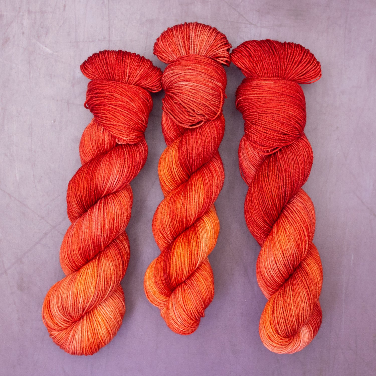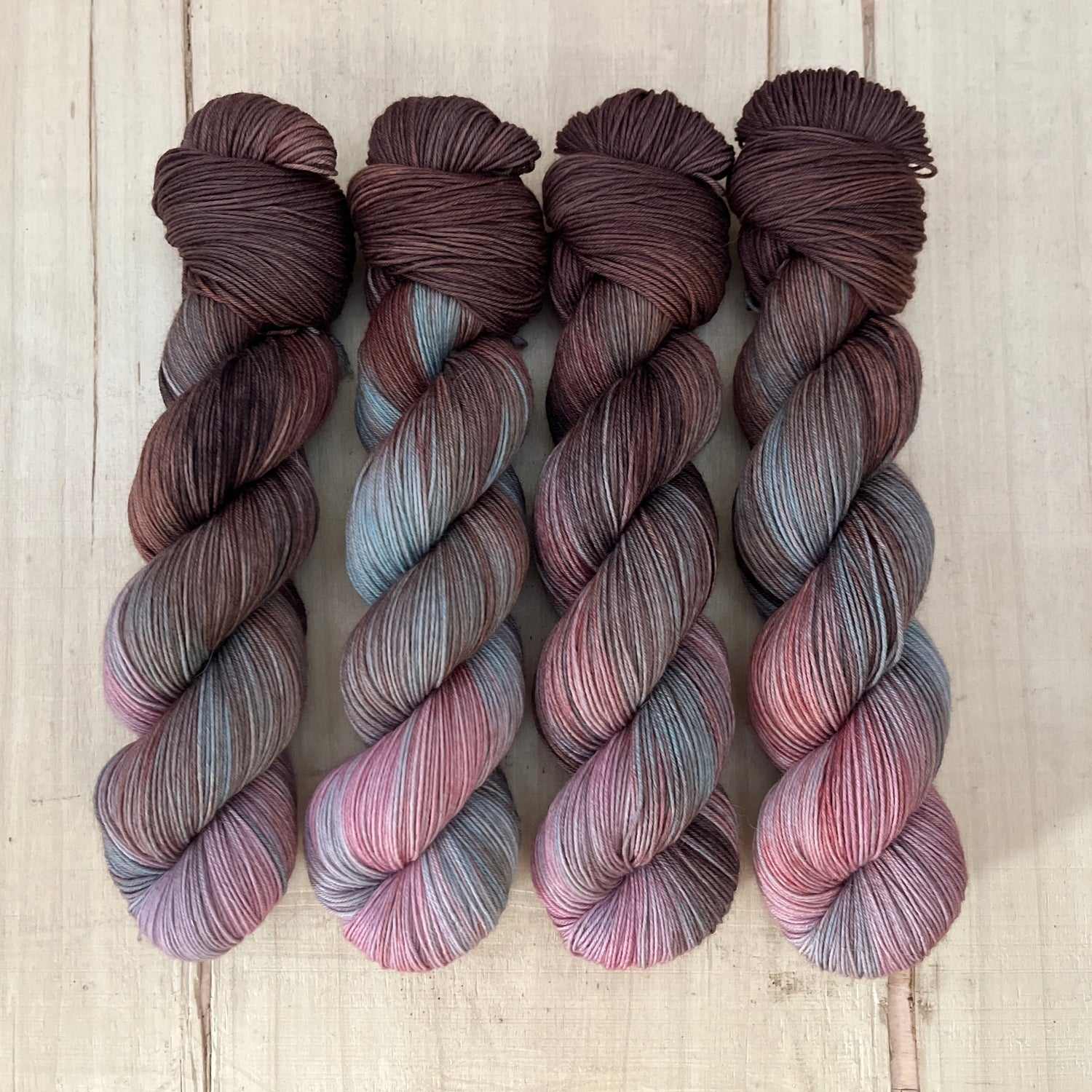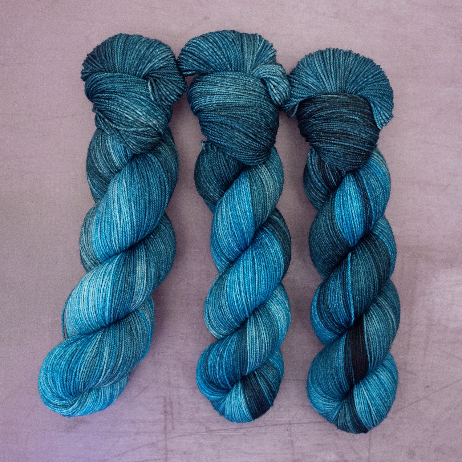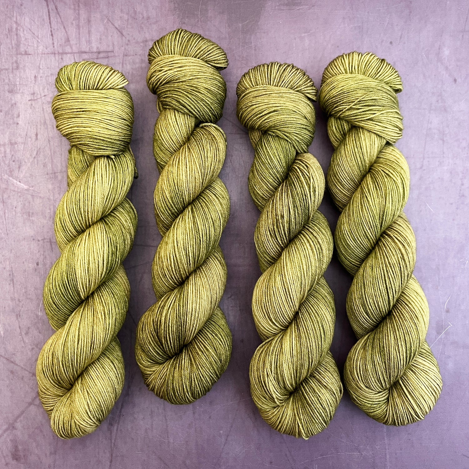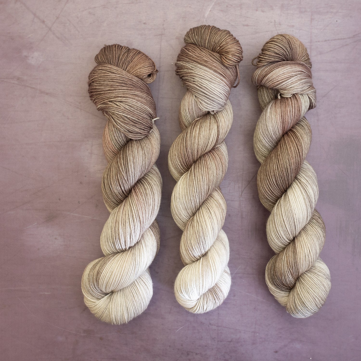 Skeins purchased here are DYED TO ORDER and have a lead time to dispatch of approx. 7 days. Please note, photos show a recently dyed batch but some colour variation is possible. For more insight into our dye techniques and approach to repeatable shades see currently in the dye pots.