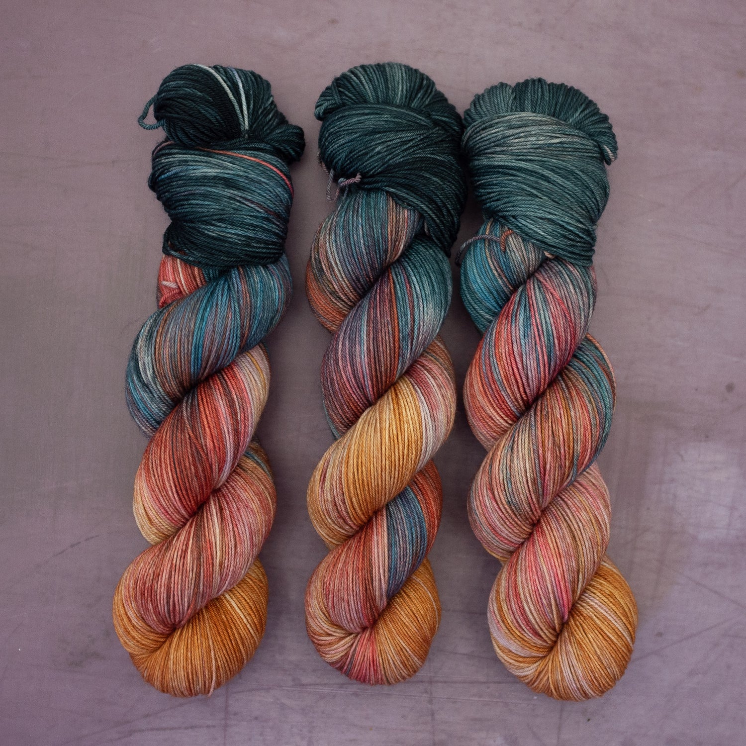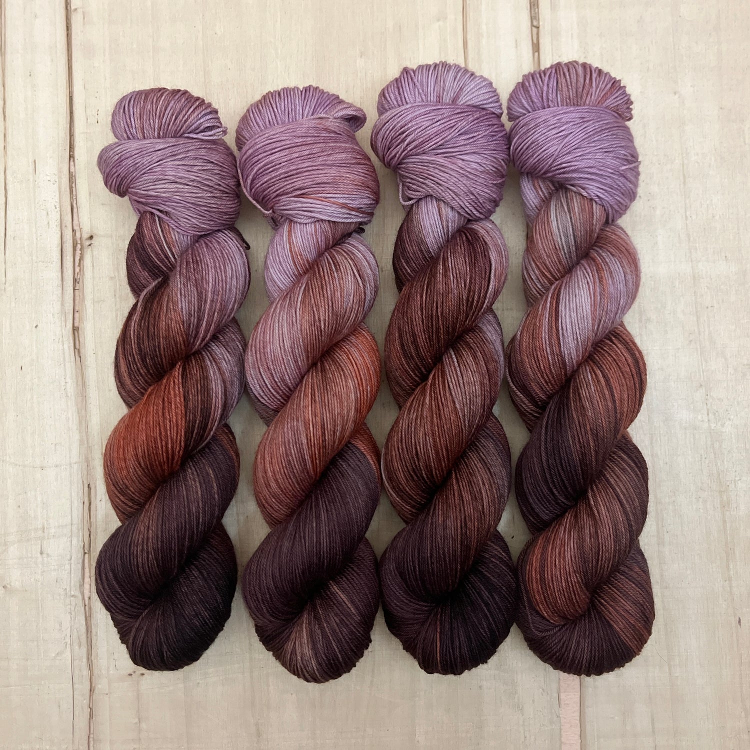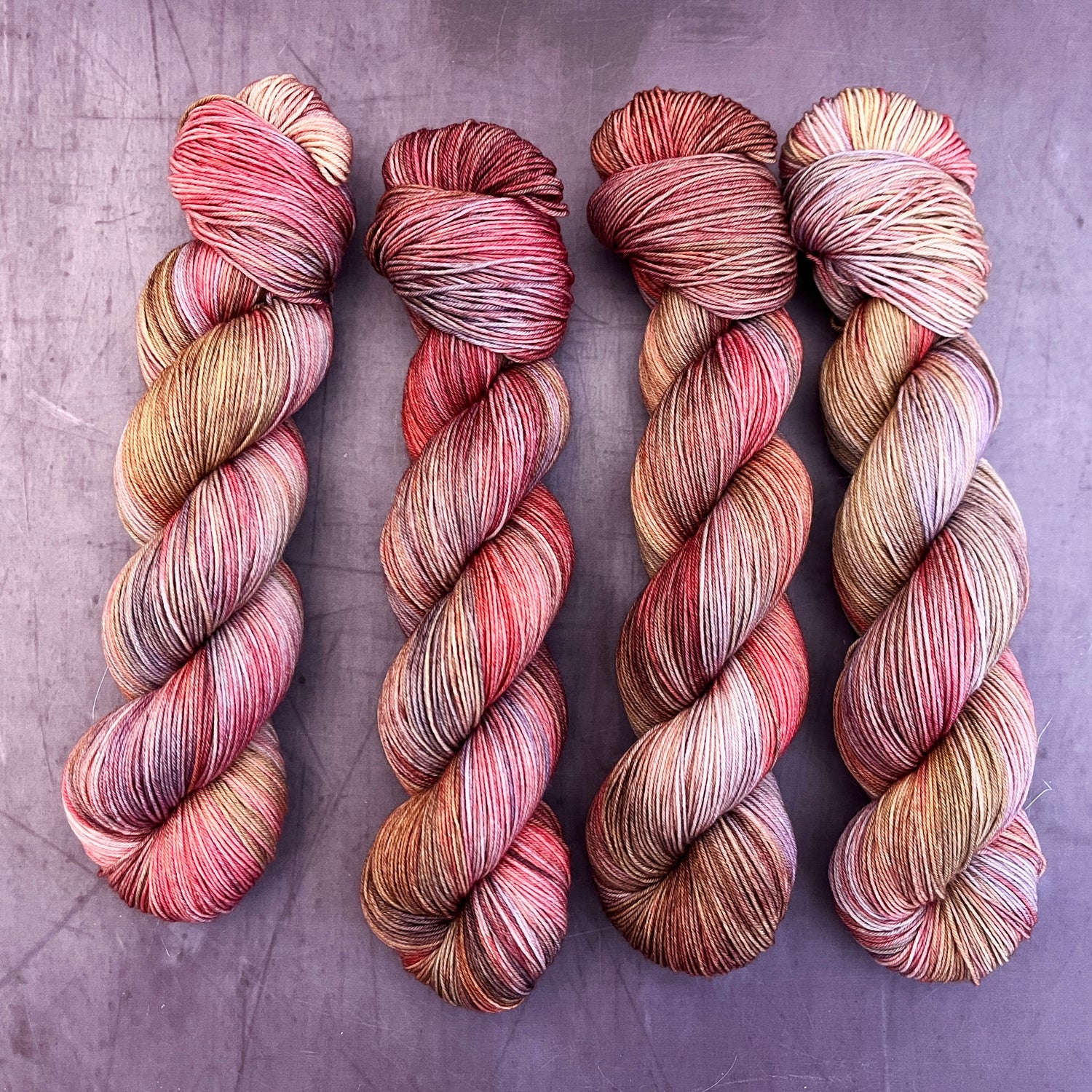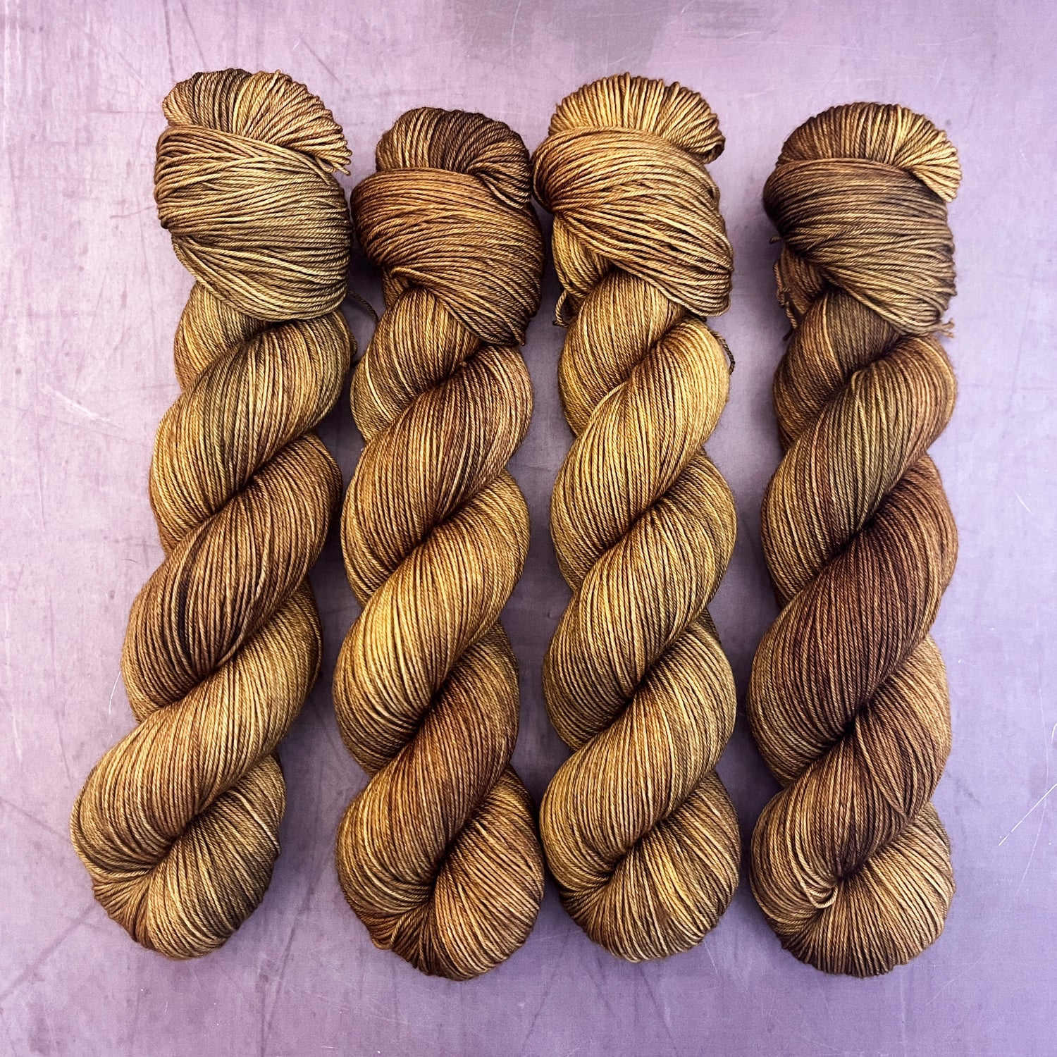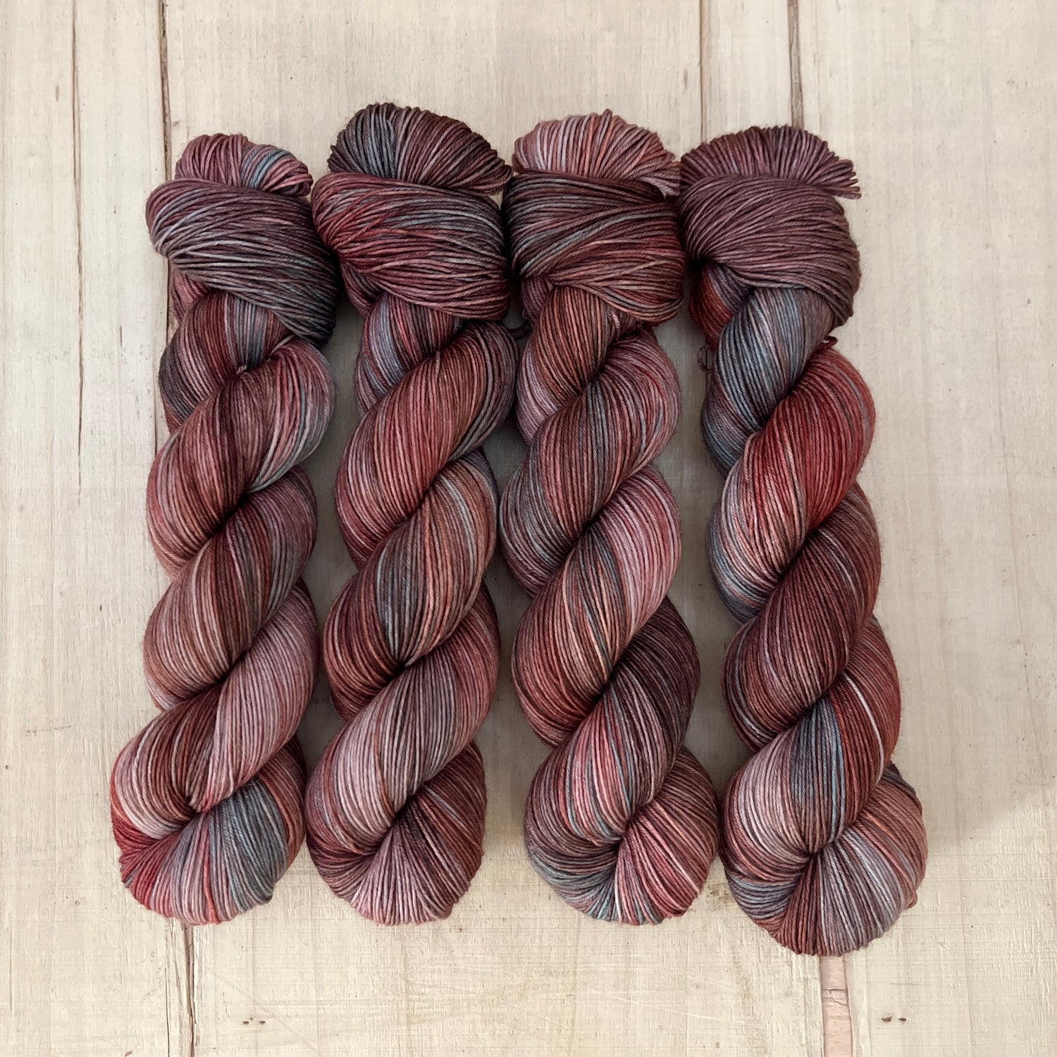 Skeins purchased here are DYED TO ORDER and have a lead time to dispatch of approx. 7 days. Please note, photos show a recently dyed batch but some colour variation is possible. For more insight into our dye techniques and approach to repeatable shades see currently in the dye pots.