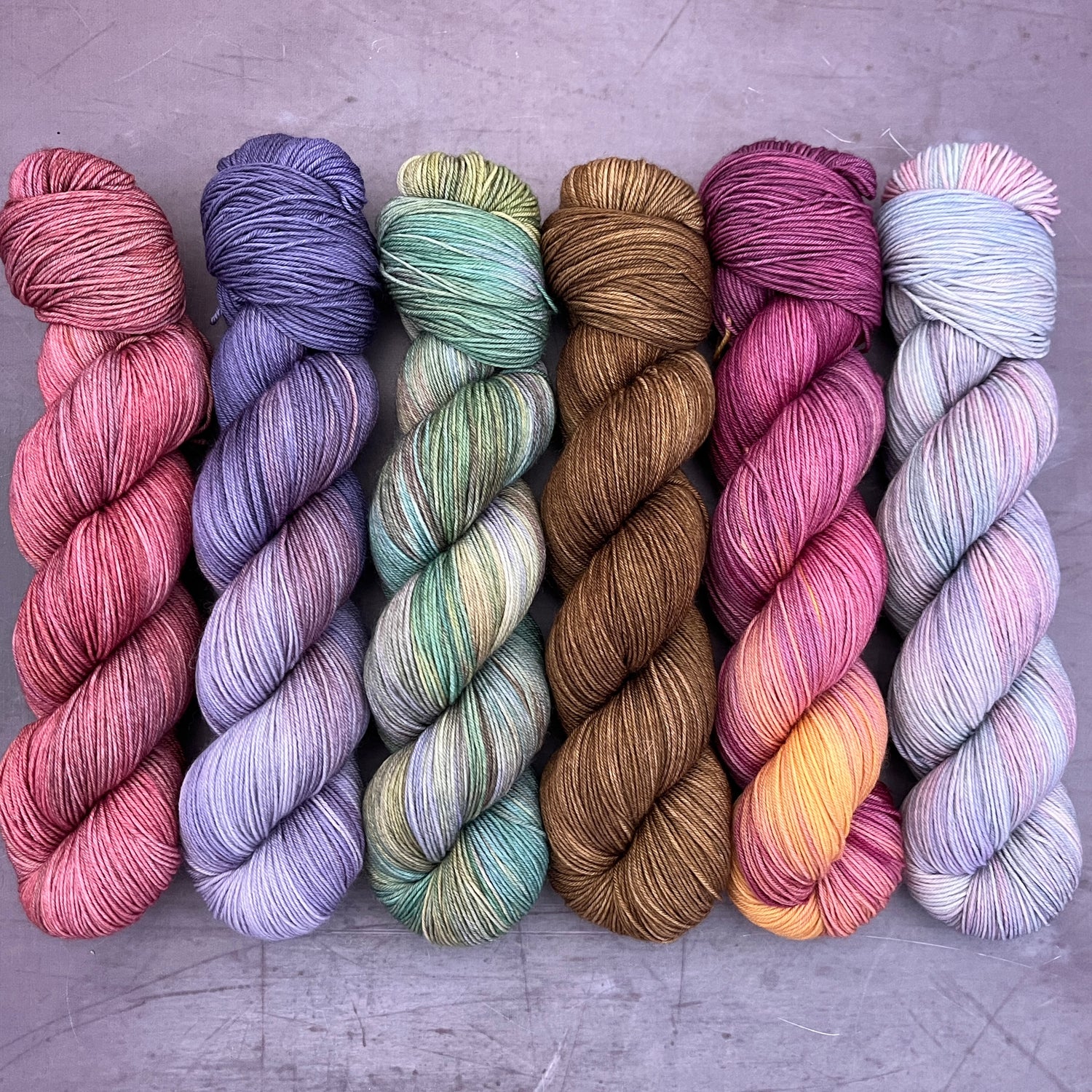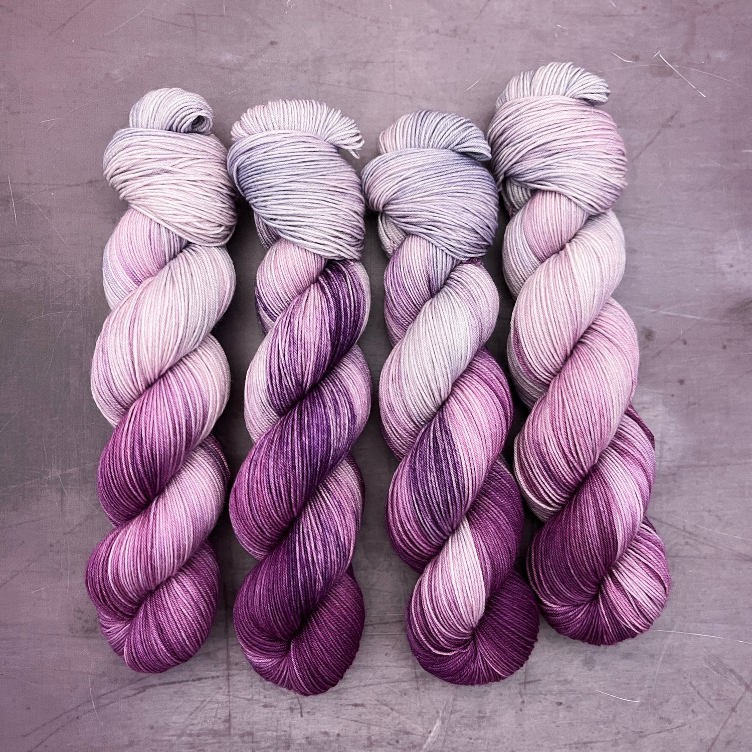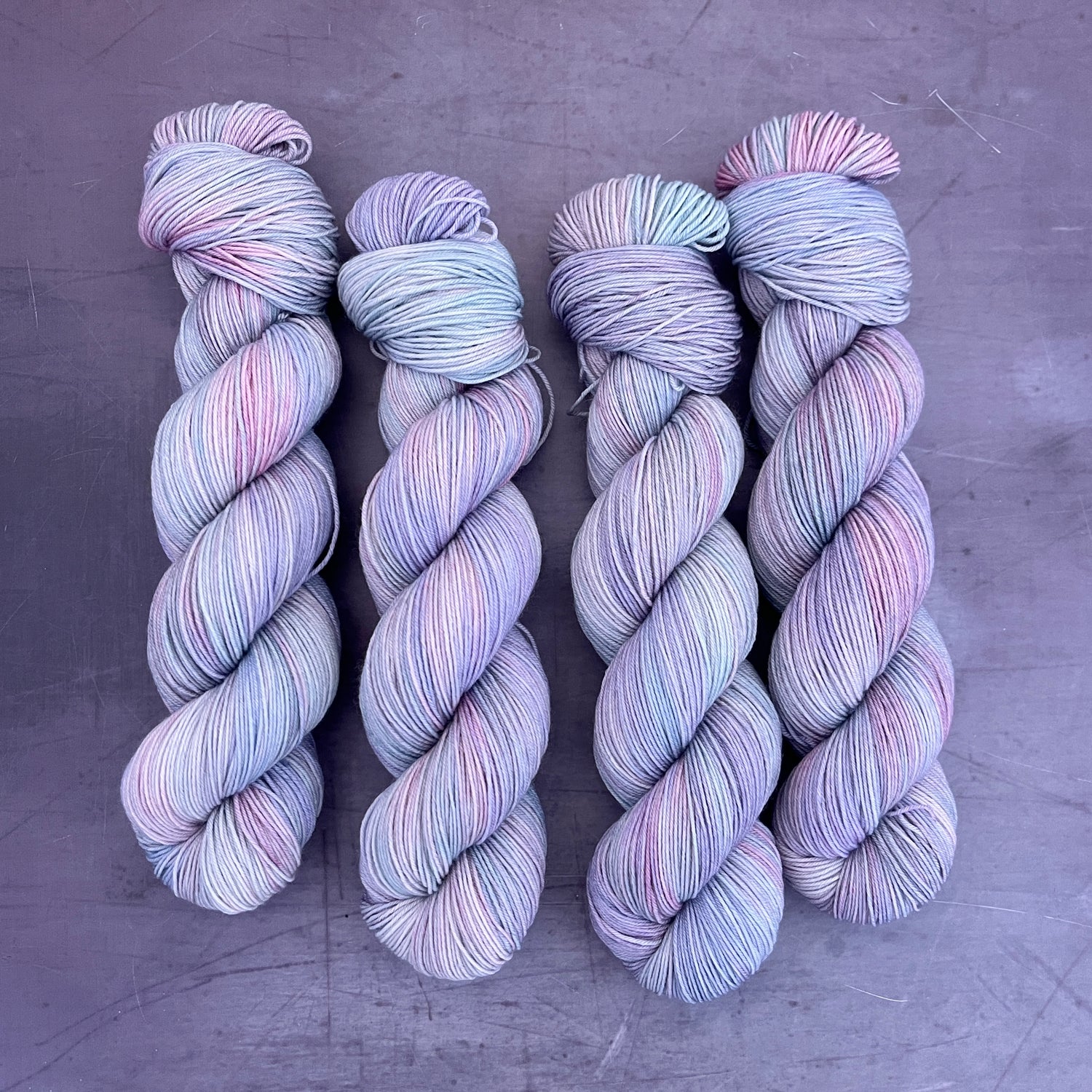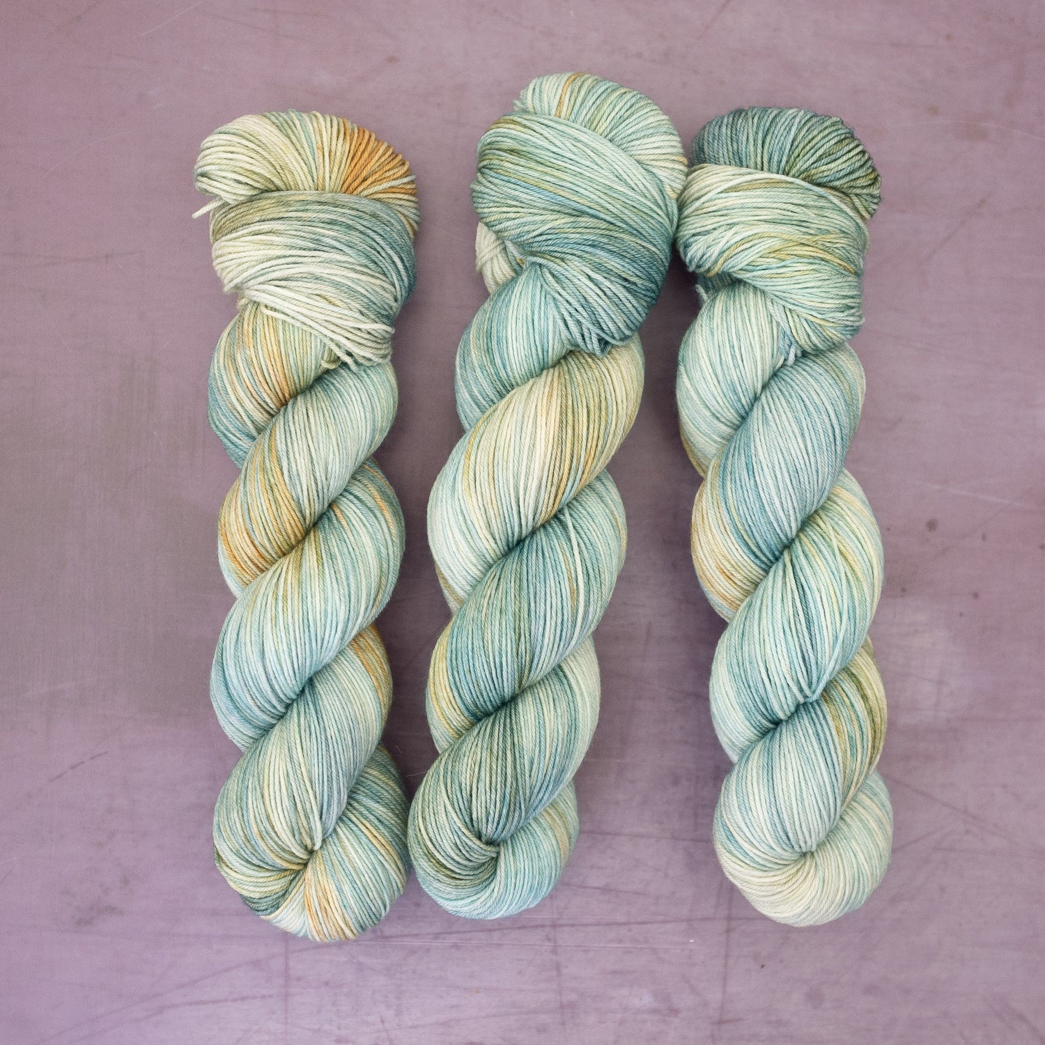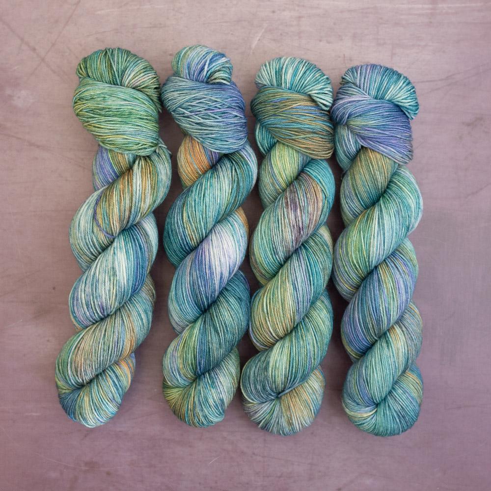 Pightle is a smooth, soft, superwash merino yarn with a medium twist that takes colour beautifully and allows us to explore all the dye techniques we love.