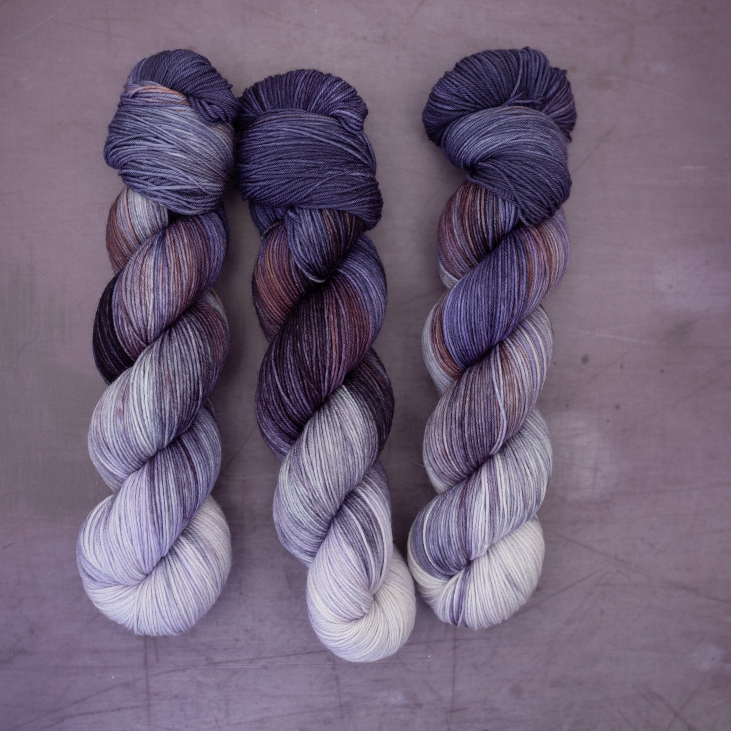 As with all small batch, hand dyed yarn that doesn't have dye lots, we also recommend knitting alternate rows from two skeins when working on larger projects to avoid noticeable changes between skeins.