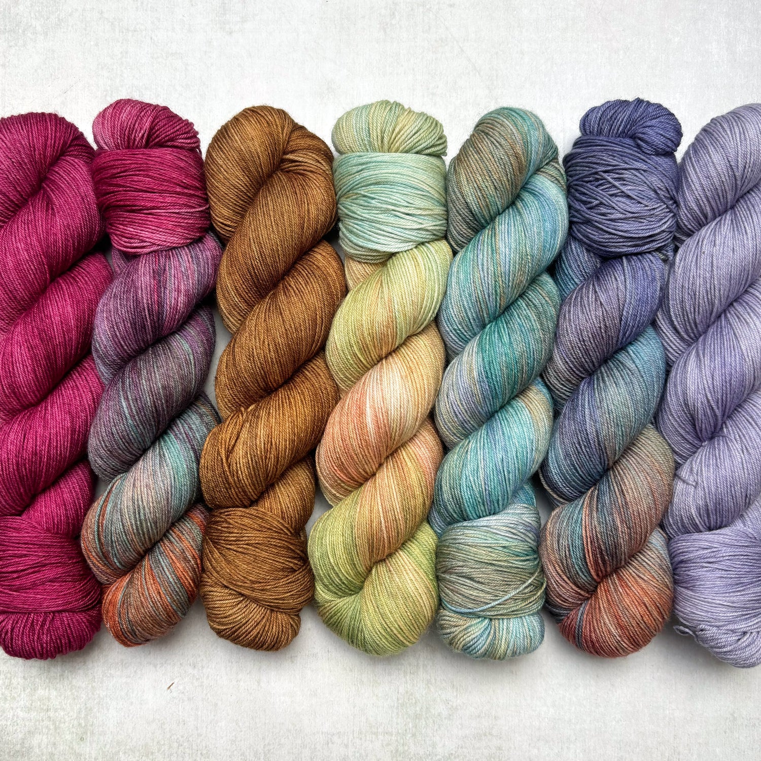 Skeins purchased here are DYED TO ORDER and have a lead time to dispatch of approx. 7 days. Please note, photos show a recently dyed batch but some colour variation is possible. For more insight into our dye techniques and approach to repeatable shades see currently in the dye pots.