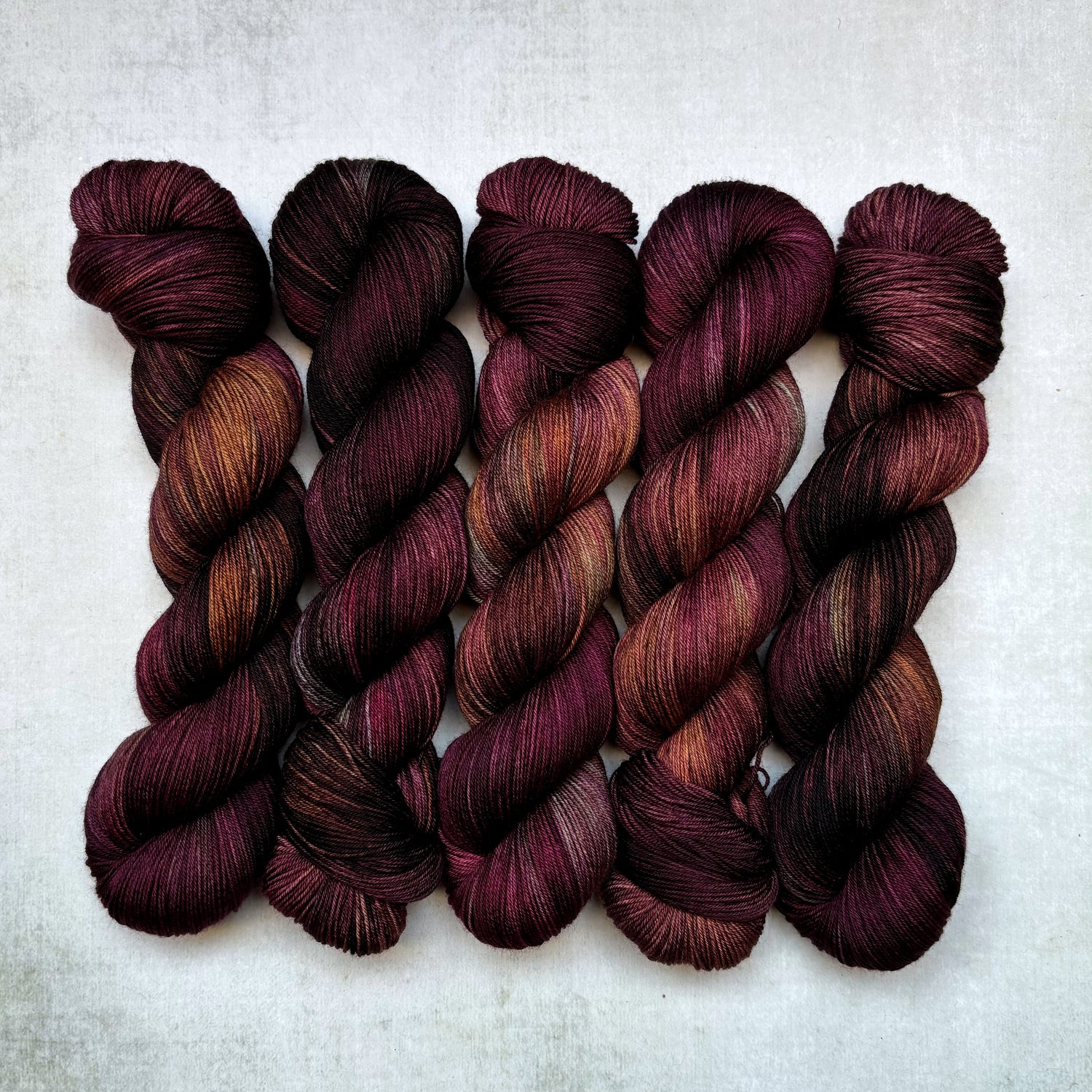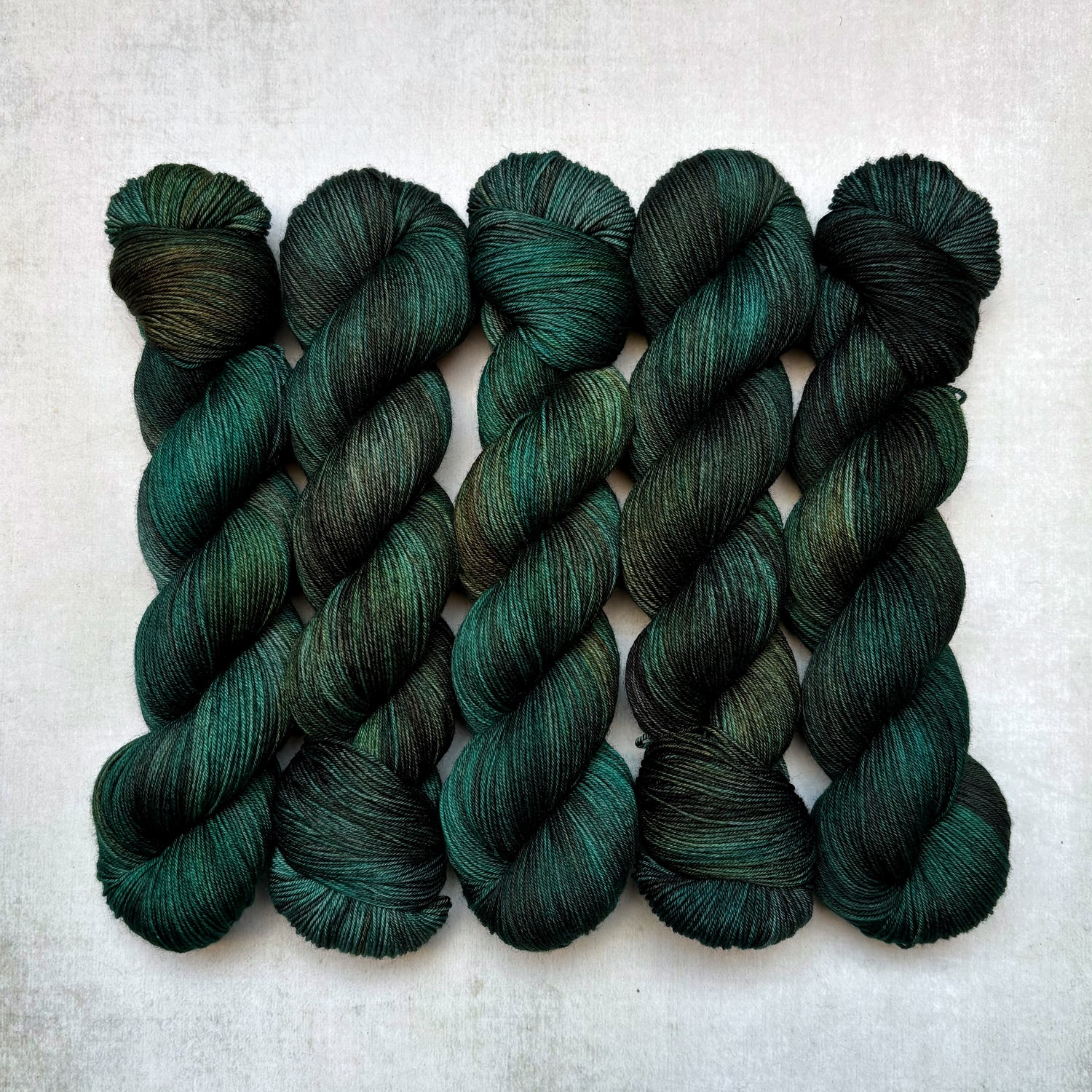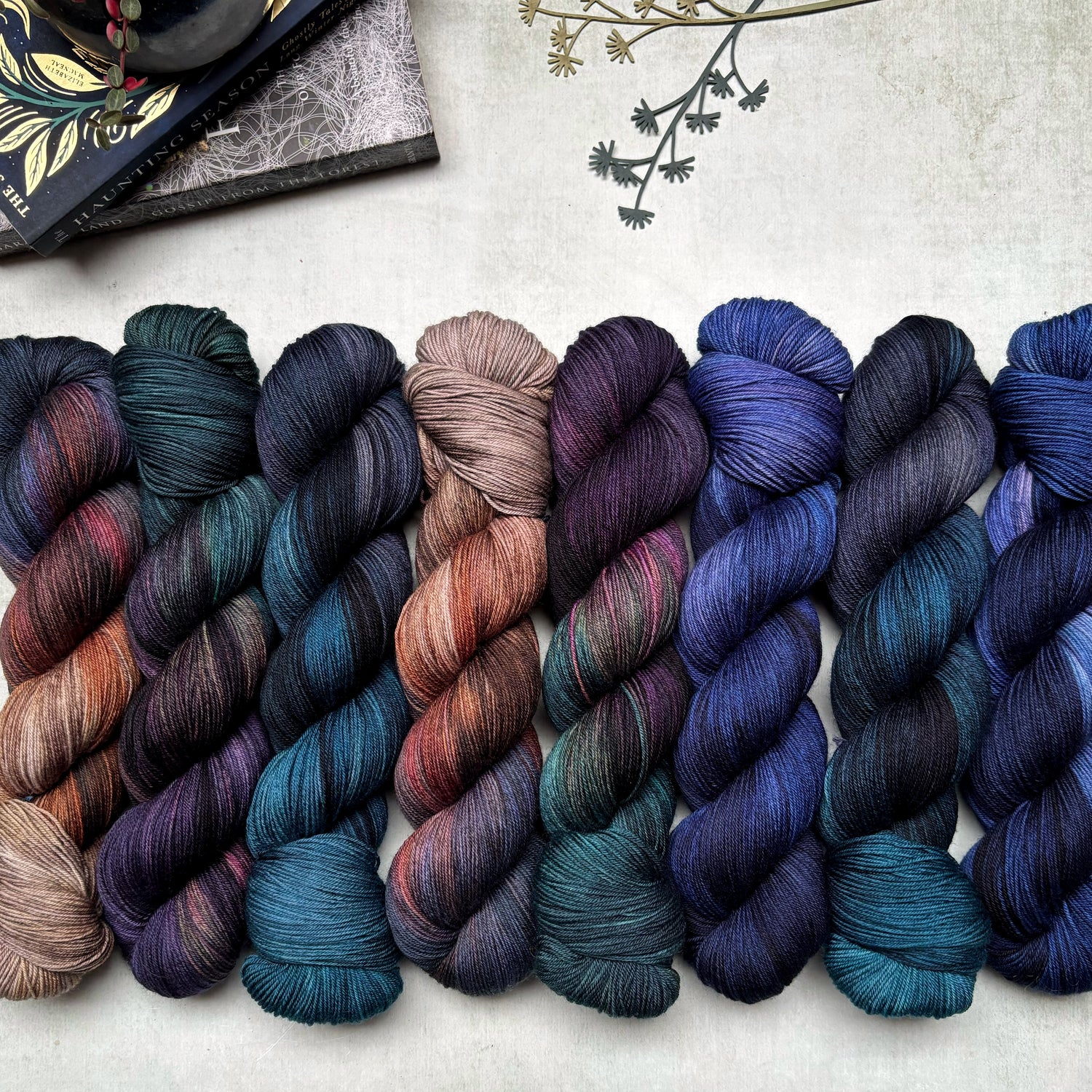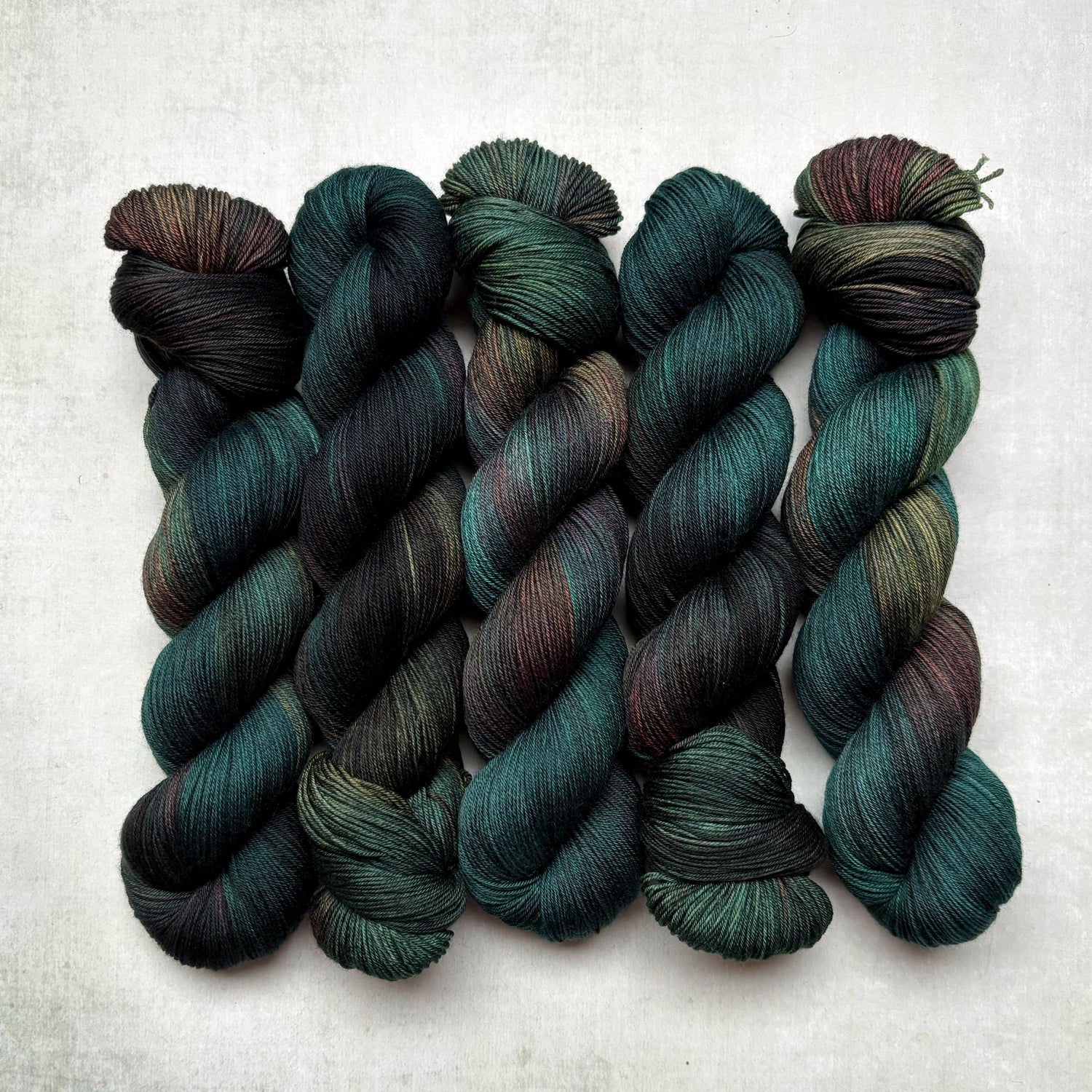Inspired by a dye pot that went rogue and turned my warm, fuzzy fairy light inspired shade into something altogether darker and more intense! I'm using my favourite layering dye techniques to create a series of richly saturated shades with jewelled highlights and pops amongst the inky dark tones. Each batch is a one-off and while something similar might appear in the next batch of shades, the techniques and process involved means they'll never be quite the same!