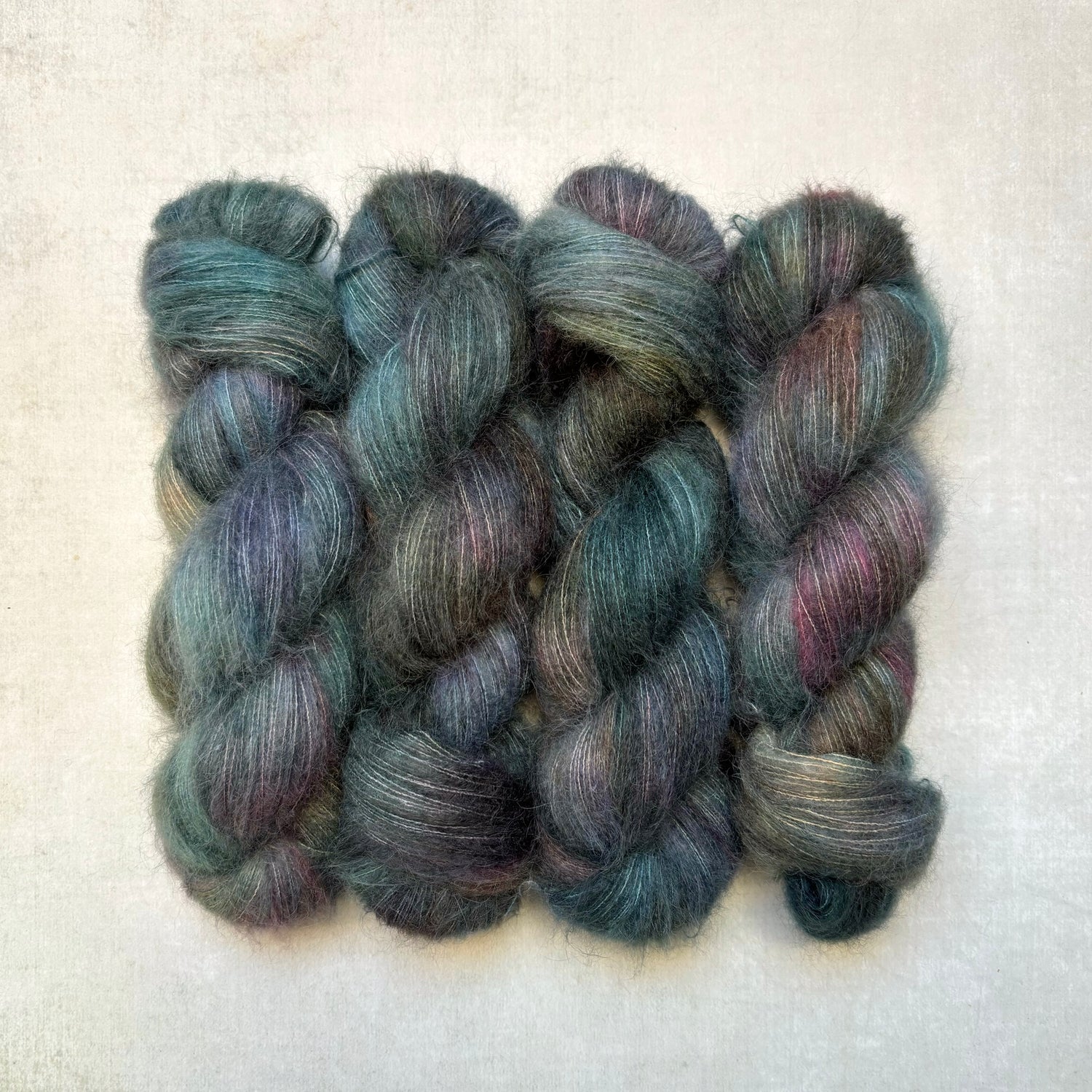 aker | lace is a cloud-like combination of baby suri alpaca and silk. Perfect on its own for ethereal yet cosy shawls but also perfect held with a fingering weight yarn for cosy sweaters and luxurious accessories.