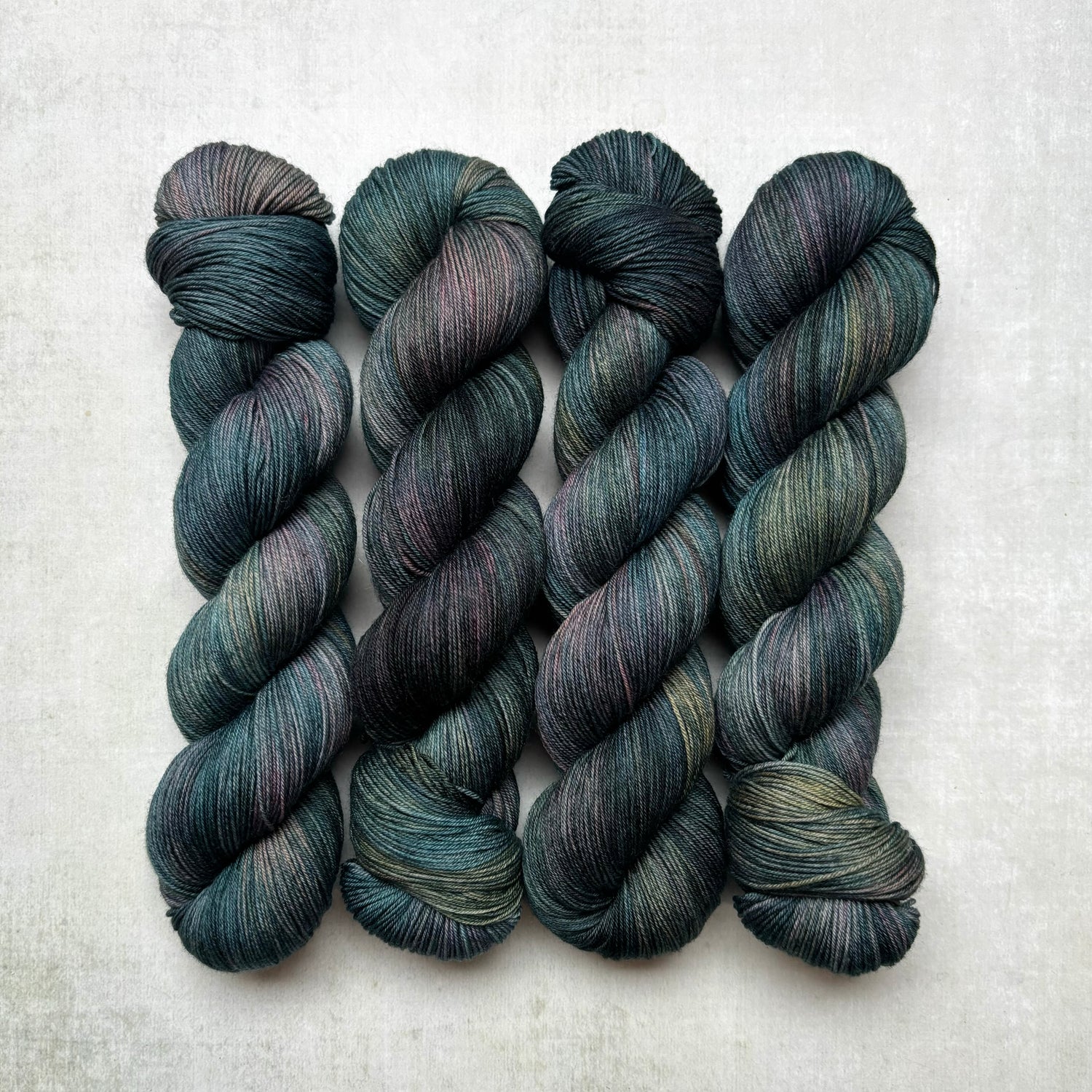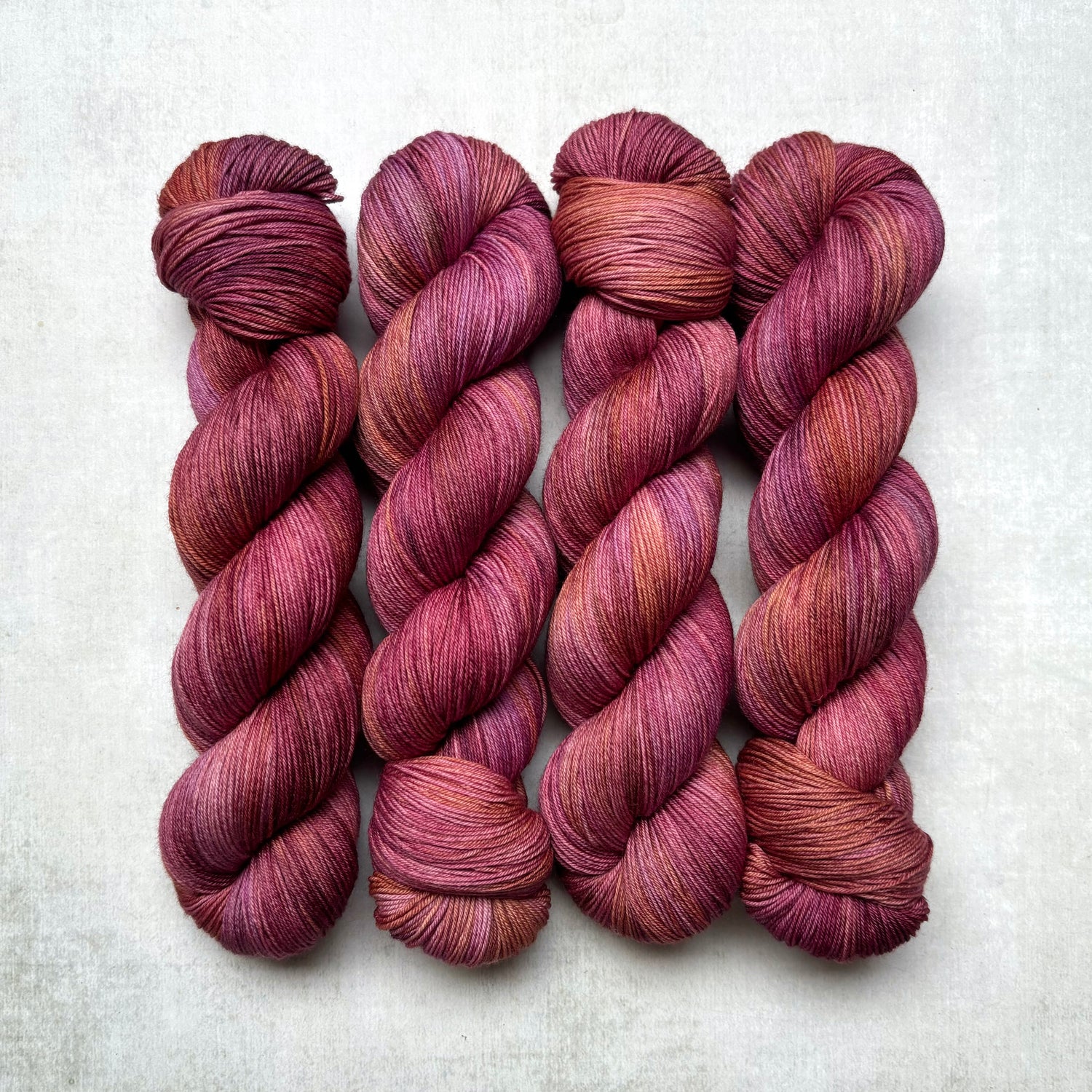 pightle | fingering/4ply is a smooth 4ply superwash merino yarn with a medium twist and it's our go-to yarn for shawls, lightweight sweaters, and to hold with a fluffy yarn for the cosiest fabric imaginable!